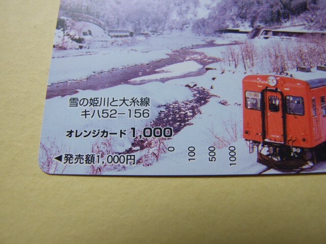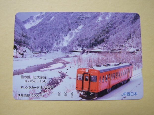◇オレンジカード1000 未使用券◇JR西日本 『雪の姫川と大糸線 キハ52-156』USED品 200502