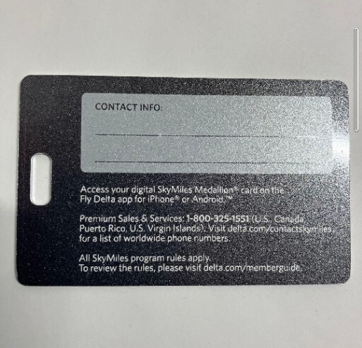 2025年 デルタ航空 最上級クラス プラチナメダリオンM2会員専用メタル製ネームタグ1枚 冊子無し