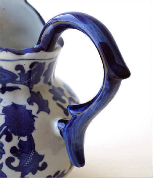 | ヨーロピアンとオリエンタルの世界観を融合させた シノワズリ様式のアイテムは インテリアに優美でエキゾチックな 風を運んできてくれそう 伸びやかに広がる藍の花や 蔓をイメージしたハンドルの 個性的な形が目を惹く ピッチャーベースです 商品名 : シノワズリーなピッチャーベース 商品番号 : vin1115 全体サイズ(cm) : 幅22×奥行15.5×高さ19.5 口径(くびれ部分) : 直径8 材質 : 陶器 重量 : 1.2kg ※陶器の裏面は多少ざらざらとしているため、テーブル等の擦り傷にご注意ください ※手作り品のため、色の出方や模様・形・サイズ等に個体差があります ※本体の小さな傷、傾き、ガタつき等はご容赦ください -陶器(土物)の特性とお願い- 土物は同じ技法、同じ窯で焼成しても土や釉薬に含まれる天然鉱物などの影響や天候で焼き上がりは微妙に異なります。工業製品のように同一の物になる事はありません。手作りの不均一性、窯変、釉薬の細かいヒビ(貫入)や垂れ等は、製造元より土物の特性として良品の扱いとなります。 |