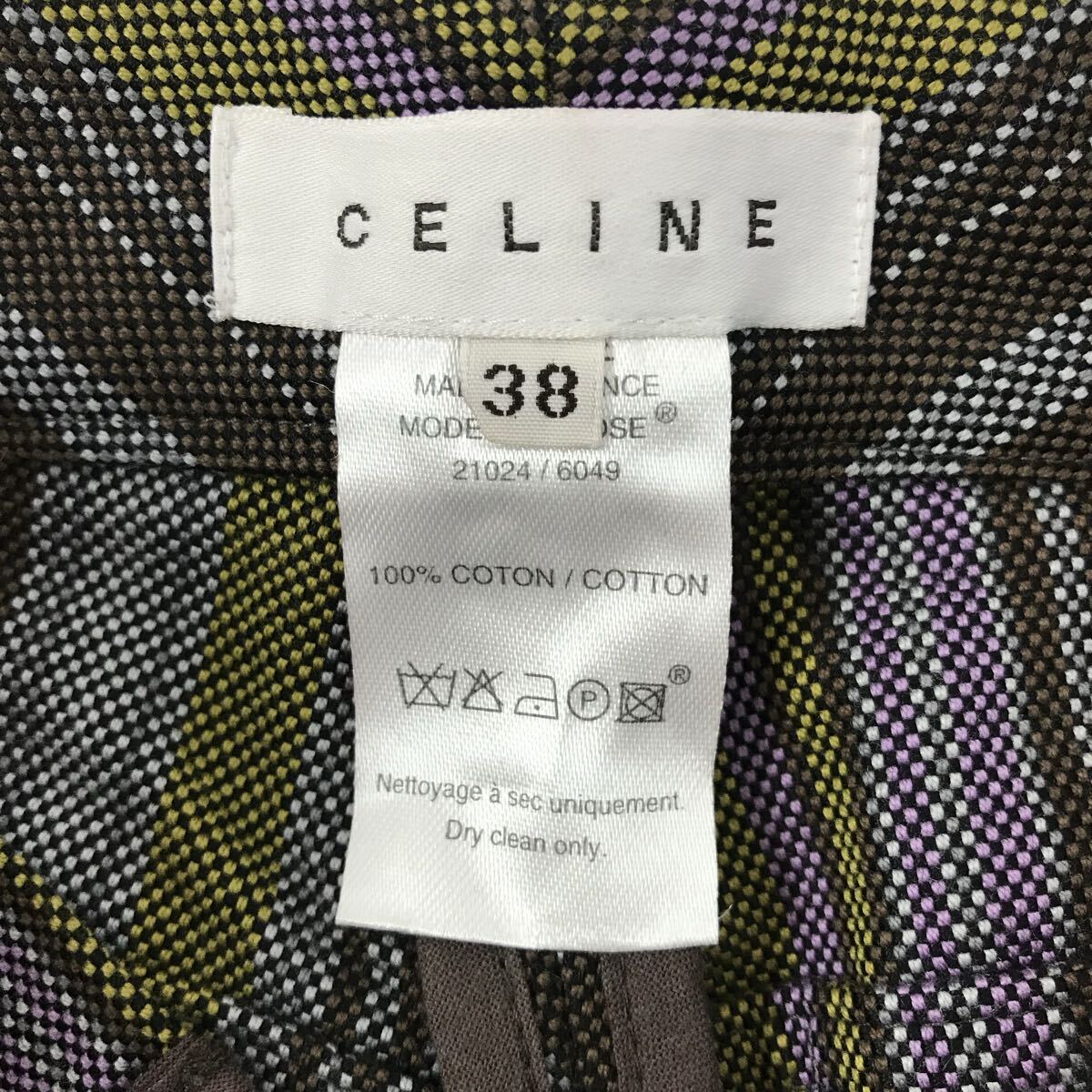d92 良品 CELINE セリーヌ ストライプ ストレート パンツ ボトム 38 フランス製 コットン100% 21024/6049 正規品