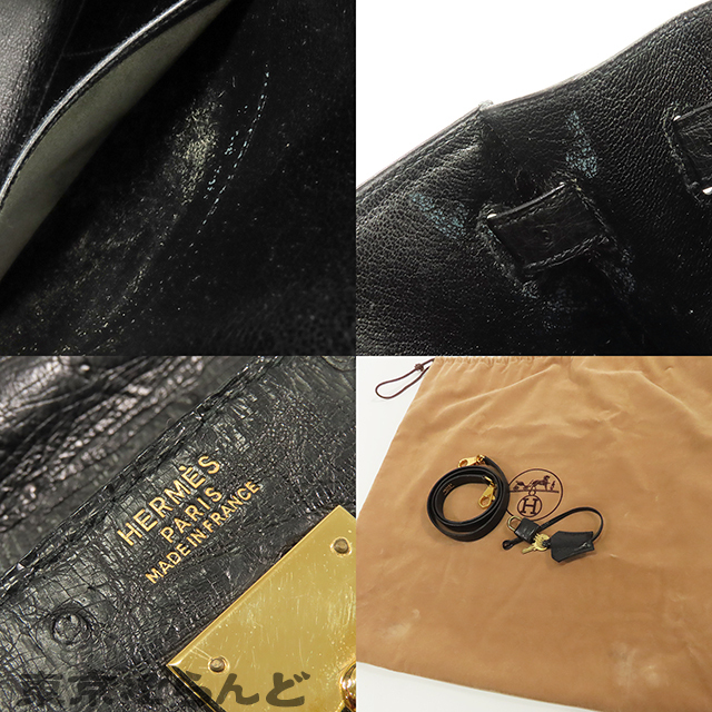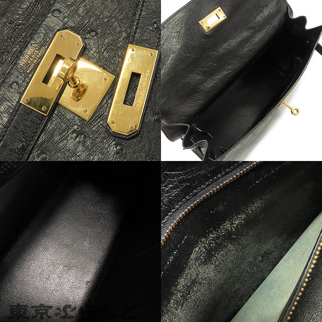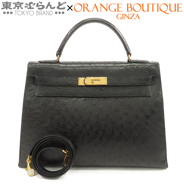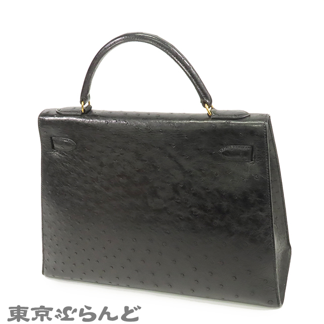 101792696 エルメス HERMES ケリー32 黒 ブラック ゴールド金具 オーストリッチ 外縫 2WAY ハンドバッグ ショルダーバッグ レディース