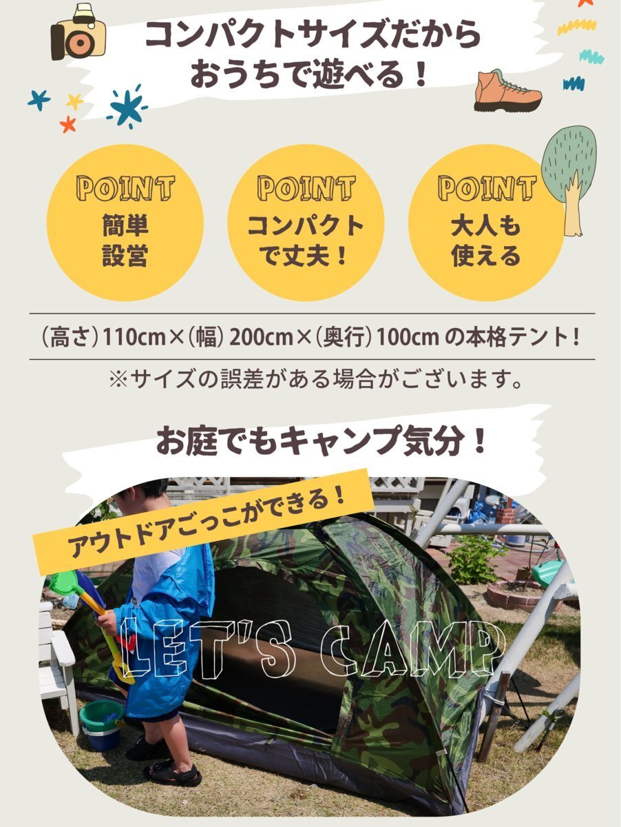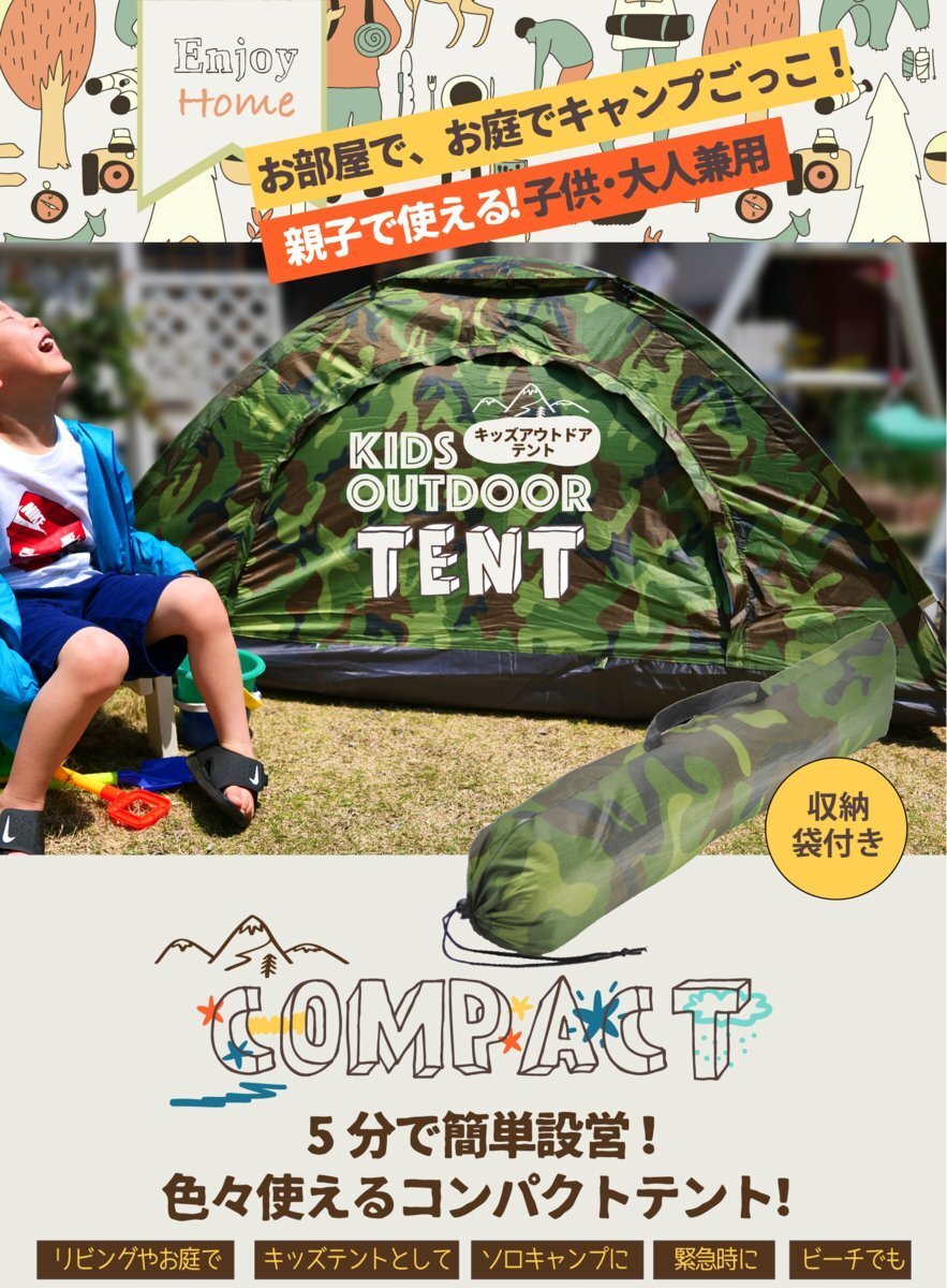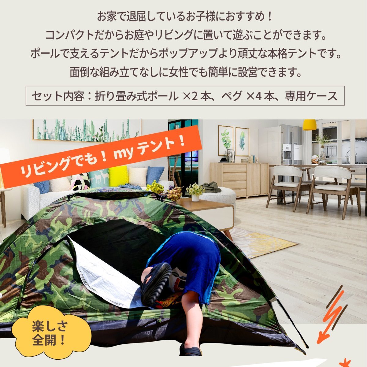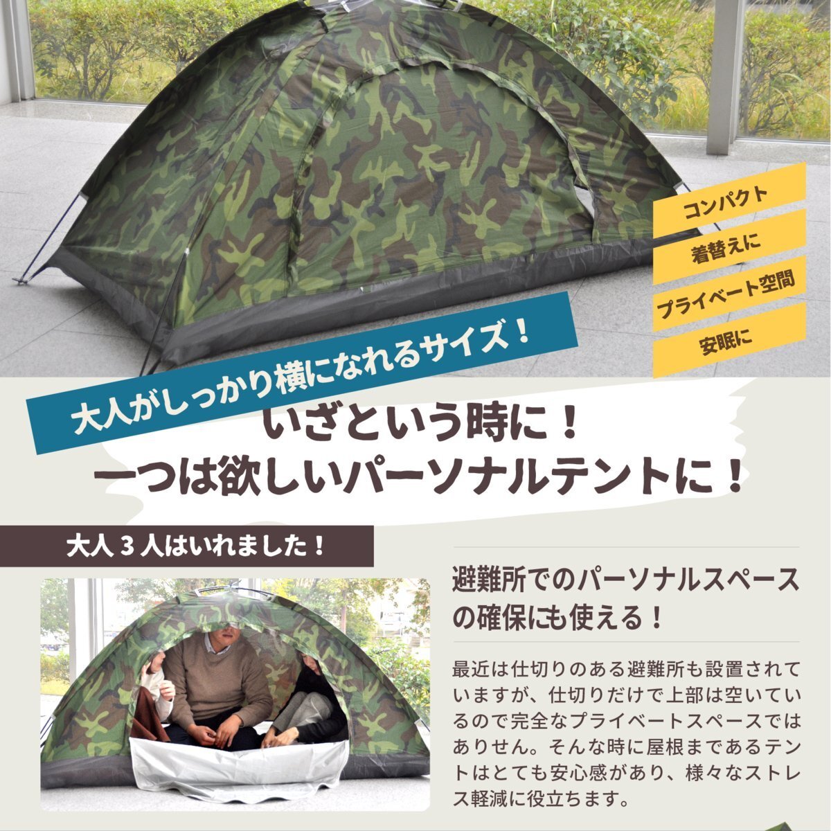 テント 子供 キッズ 大人も3人入れる コンパクト 簡易テント 収納袋入り 迷彩 アウトドア ソロキャンプ パーソナルテント 送料無料 e049