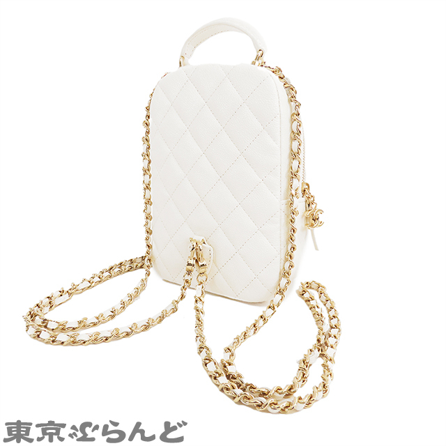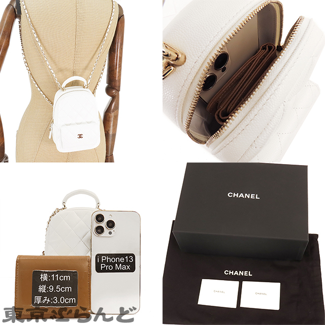 101767909 シャネル マトラッセ チェーンショルダー ミニ リュック ランダムシリアル 白 G金具 キャビアスキン デイパック レディース