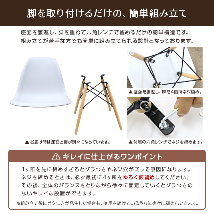 時代を問わない洗練されたデザイナーズチェア。 20世紀を代表するプロダクトデザイナー・イームズ夫妻の最高傑作の ひとつとして名高いイームズチェアのリプロダクト製品です。 スタイリッシュ&機能性を備えたドゥエルレッグ。 脚部先端にはプラスチック製の保護パーツ付きで床の傷を防ぎます。 オフィスやリビング、ダイニングなどシチュエーションを選ばず 空間になじむオールマイティなデザイン。 背板と座板が一体型の形状となったシェル型デザインで 長時間座っていても疲れにくい構造となっています。 ■商品コード:FGA0100D ■商品仕様 カラー:ブルー デザイナー:チャールズ&レイ・イームズ/Charles & Ray Eames サイズ(約):W410mm×D410mm×H820mm 座面サイズ(約):W465×D400mm×H420mm 重量(約):3.6kg 材質:ポリプロピレン樹脂、スチール、ブナ木材 ■内容 座面 × 1 脚 × 1 固定用ネジ × 4 ワッシャー × 4 六角レンチ × 1 ■注意事項 ・組立て後、脚にガタツキが生じた場合は通常使用している間に馴染んでいきますので、ご安心下さい。 ・商品はリプロダクト品となります。 ・商品は、モニターによって色合いが異なって見える場合があります。 ・仕様・デザインは改良のため予告なく変更することがあります。 【もちろん新品未使用品です】 |
