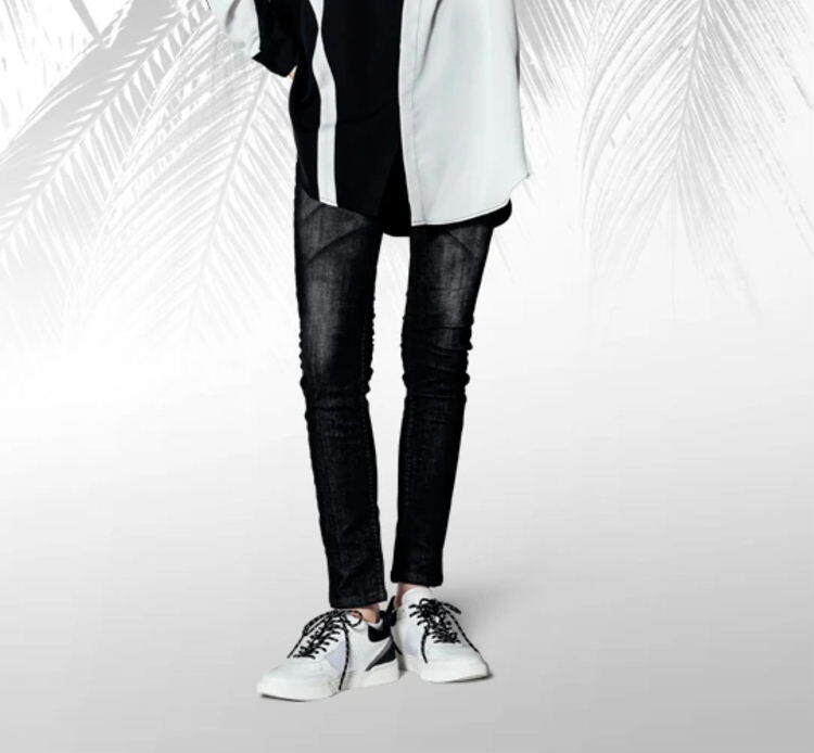■モノトーンの配色・異素材MIXのミドルカットスニーカー。