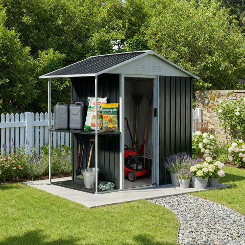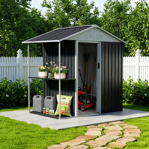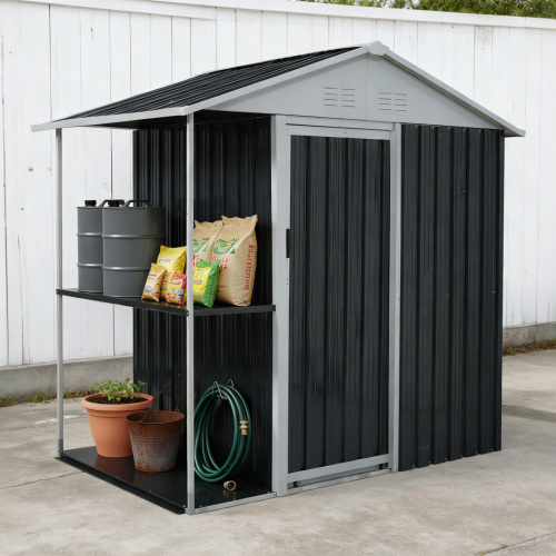 【収納ラック付き】物置 屋外 スチール 倉庫 戸外収納庫 W193*D130*H189cm 物置き おしゃれ 大型 収納庫 屋外物置 庭 新作【ブラック】