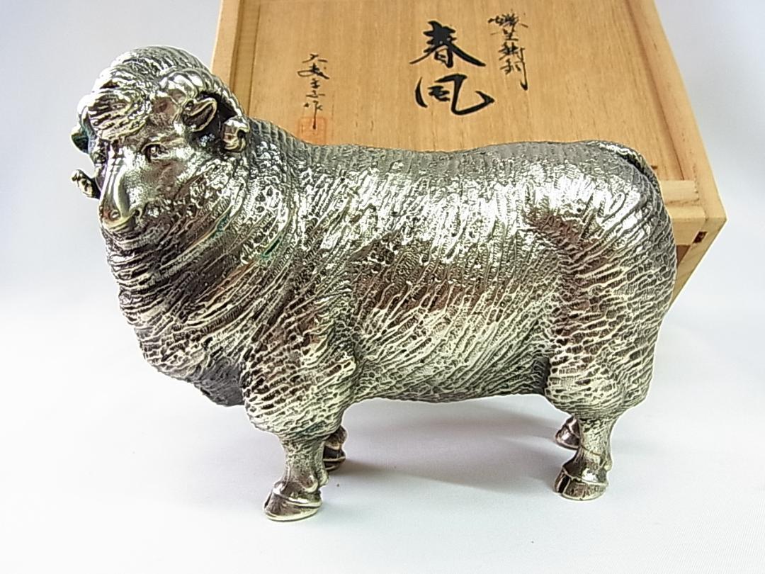 高岡銅器 羊 置物 「春風」 大森孝志作 共箱付き