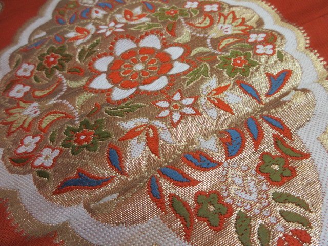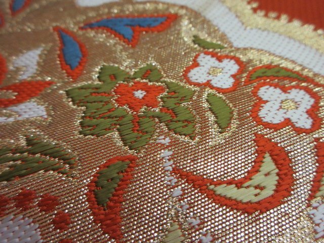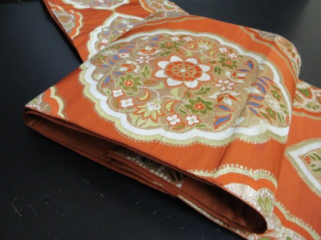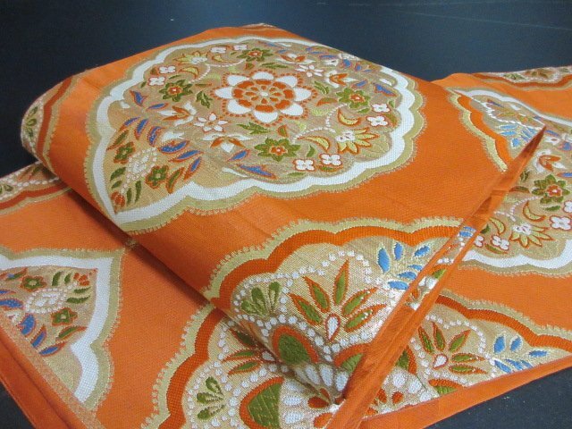 商品名 | 1円 良品 袋帯 正絹 和装 和服 花絵皿 宝相華 草花 お洒落 六通柄 長さ412cm【夢職】★ |