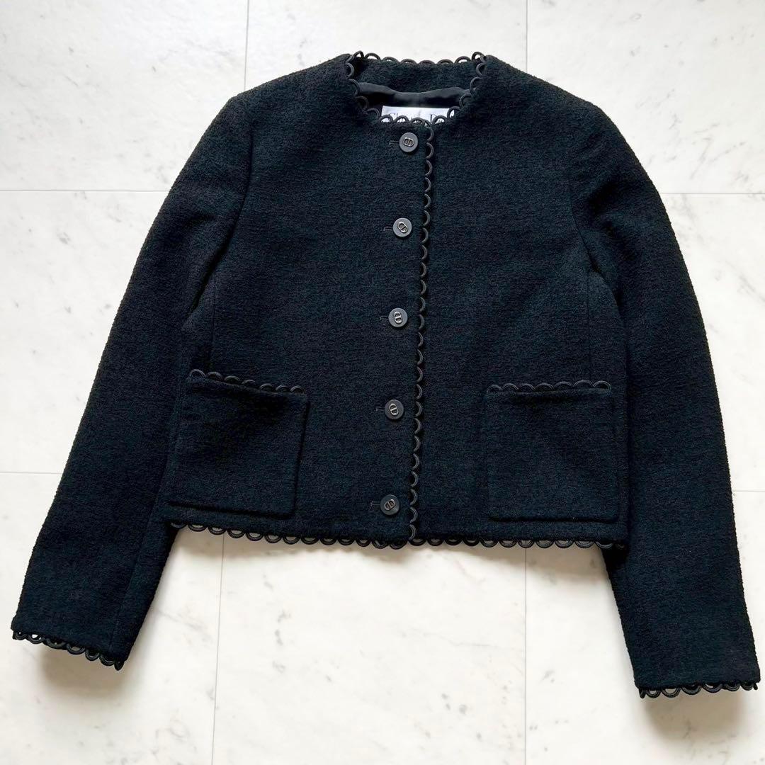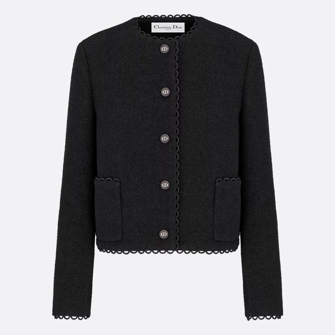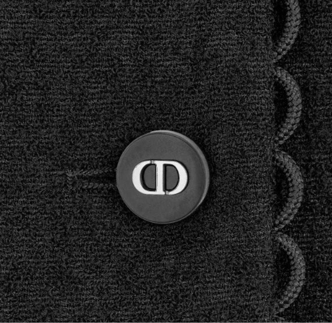 ブラックのテリー風ウールを使用し、メゾンのエレガンスのコードを讃えた、2024年クルーズ コレクションの新作クロップド ジャケット。