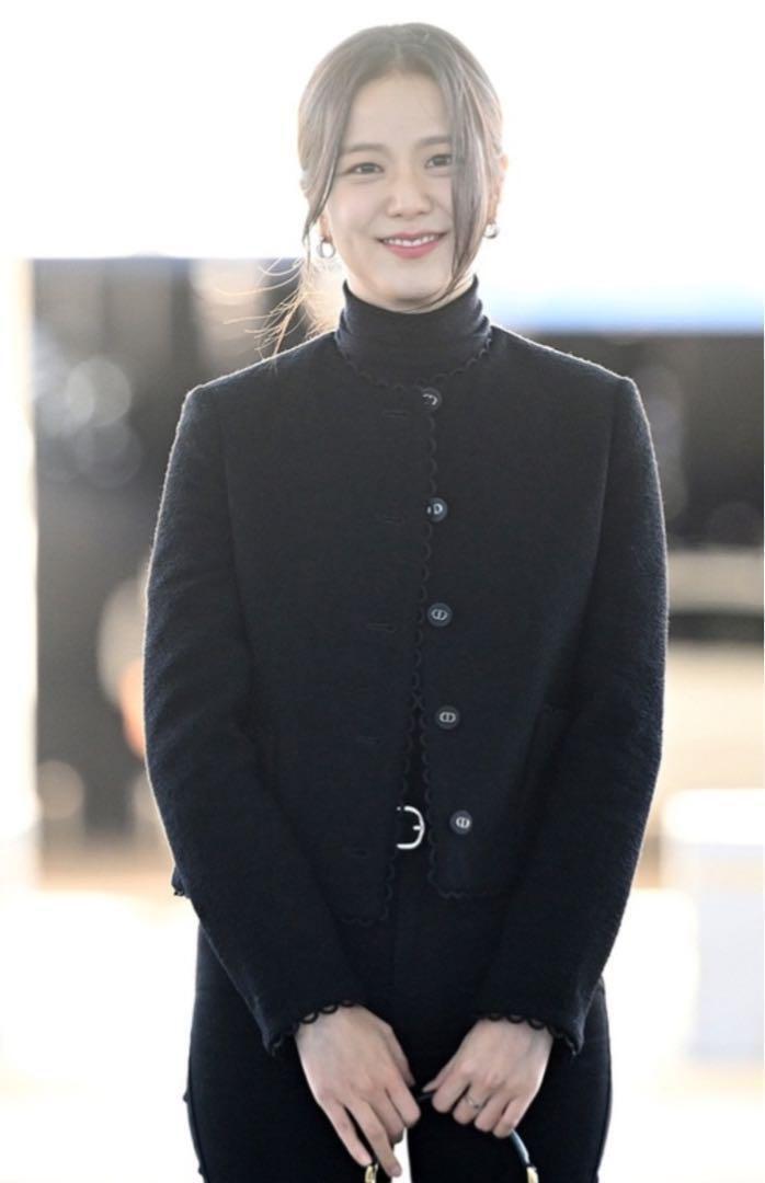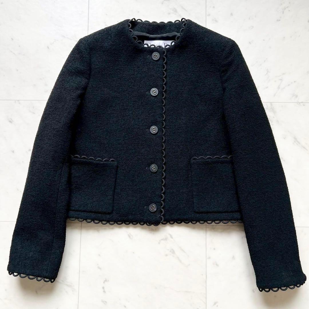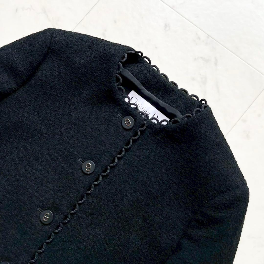 ブラックのテリー風ウールを使用し、メゾンのエレガンスのコードを讃えた、2024年クルーズ コレクションの新作クロップド ジャケット。
