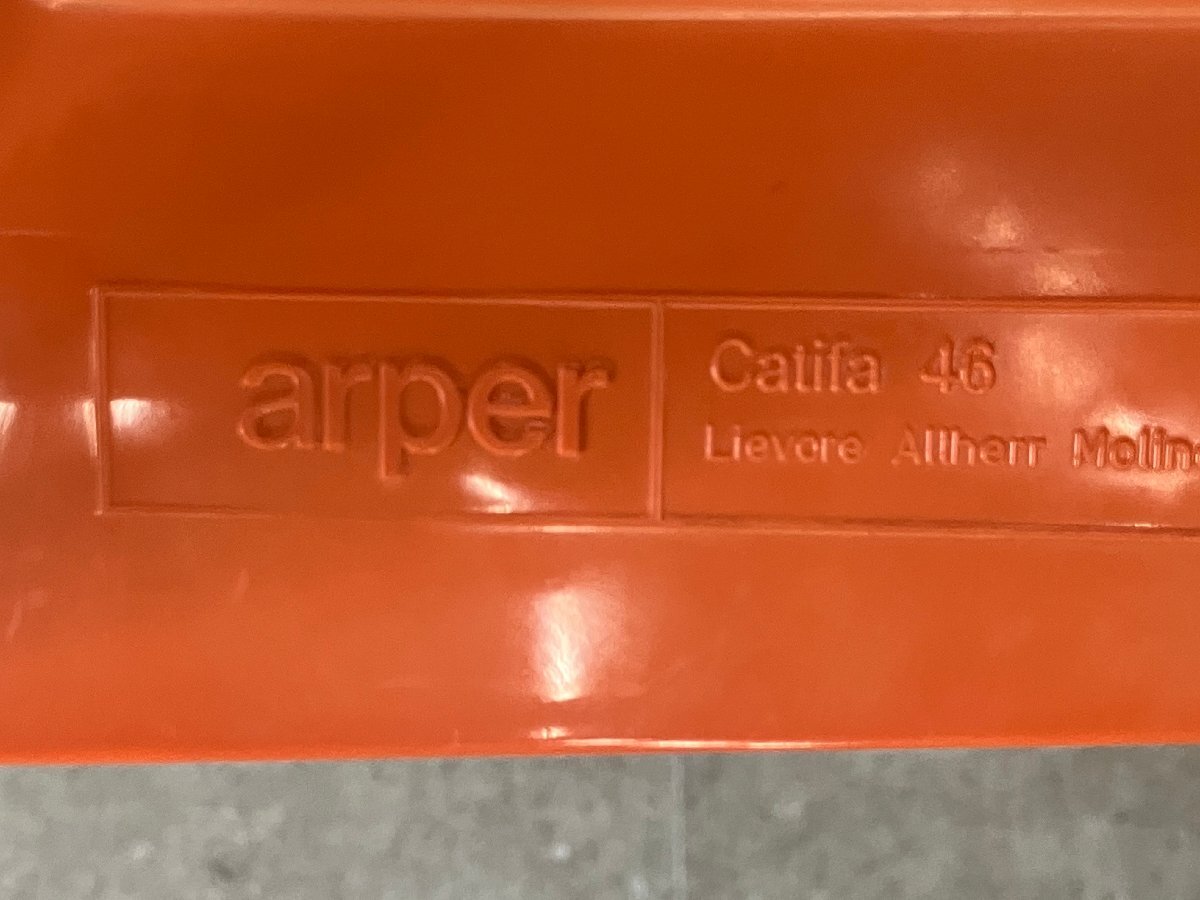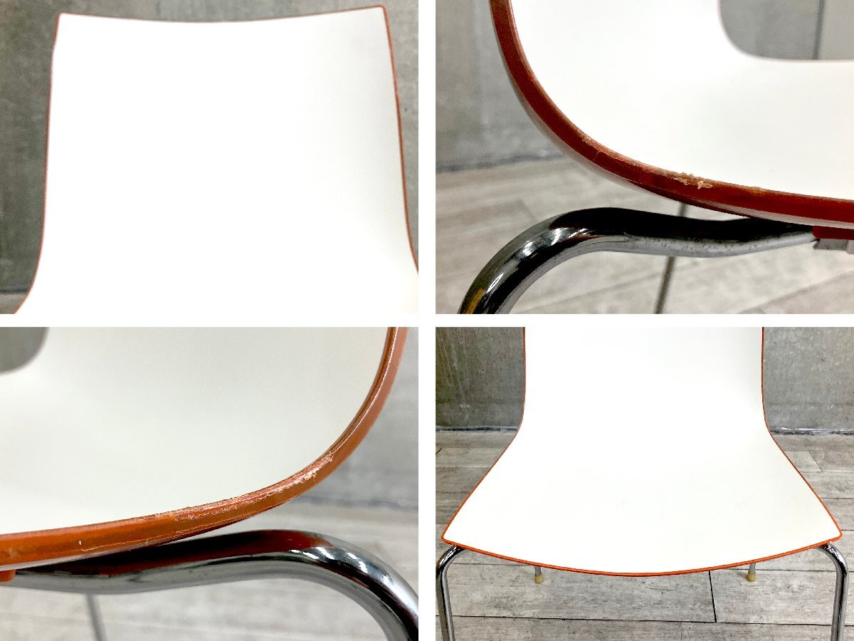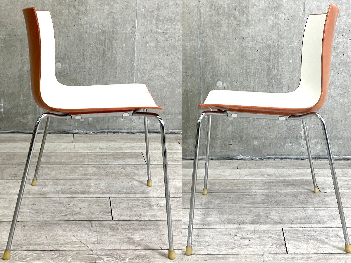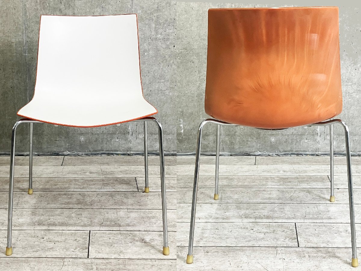 | ■機能美溢れる製品を生み出し続けているイタリアの家具メーカー『arper(アルパー)』社から代表作『キャティファ』チェアです 日本ではアクタスでも取り扱いのあるメーカーでオフィスだけではなく、ホームユースにも非常にお勧めです。 ■色/ホワイトXオレンジ系 ■サイズ/W565 x D505 x H800(SH450) ■状態/使用に伴う多少のすれ傷がございます 機能を損ねるダメージもなく、日常使用には問題ございません。 |