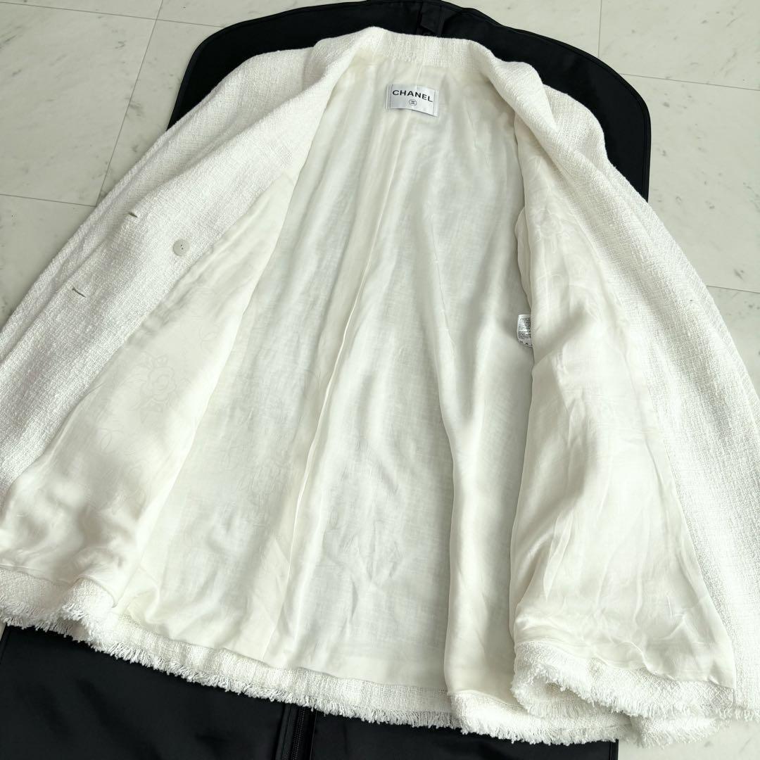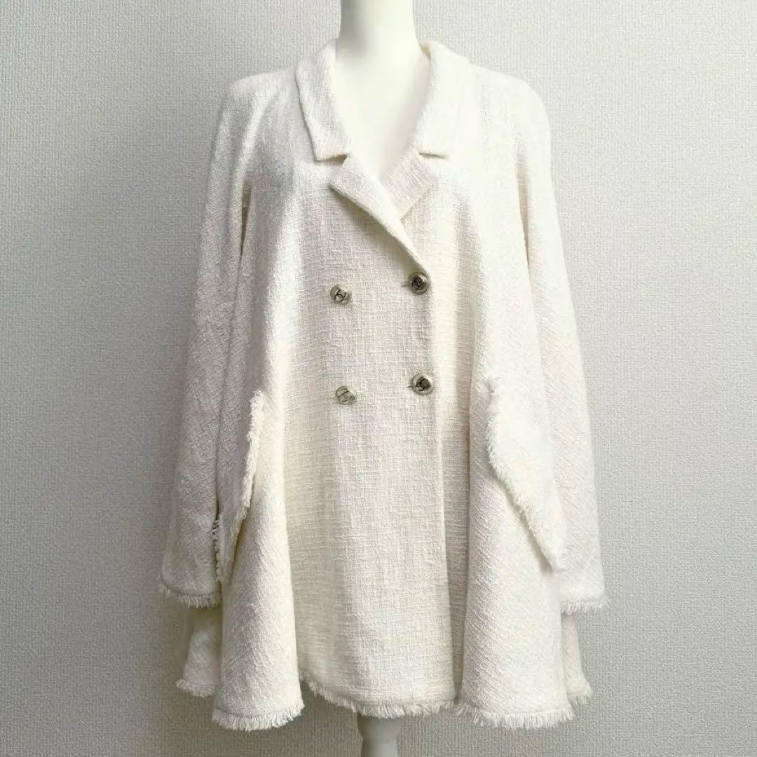 ツイード ココマークボタン Aライン フレアコート ジャケット 裏地カメリア総柄