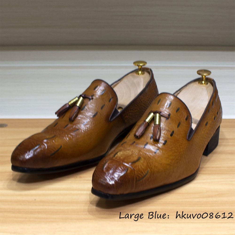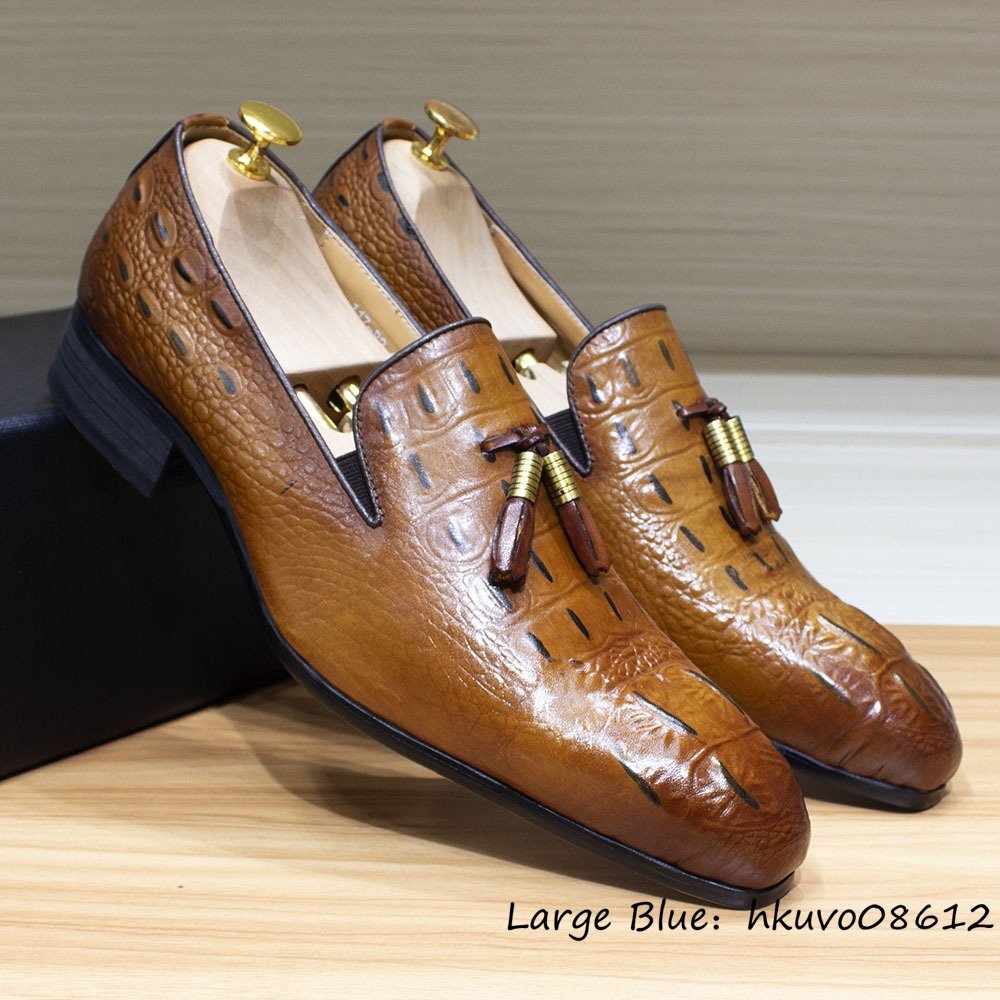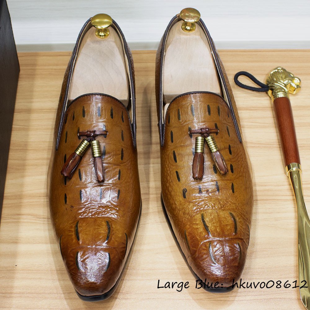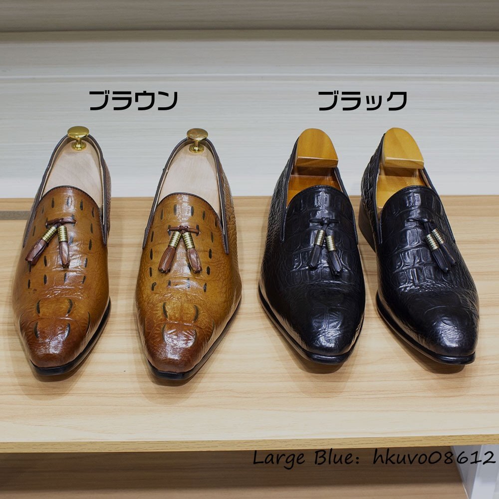 定価9万超★最高級 ビジネスシューズ 本革 メンズ レザーシューズ 牛革 鰐柄 職人手作り ローファー スリッポン 紳士靴 ブラウン 24.5cm