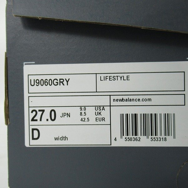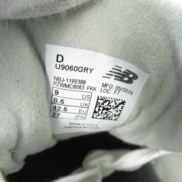 【未使用】New Balance/ニューバランス “Rain Cloud/Castlerock”90/60 レインクラウド/キャッスルロック U9060GRY/27 /080 | |||||||||||||||||||||||||