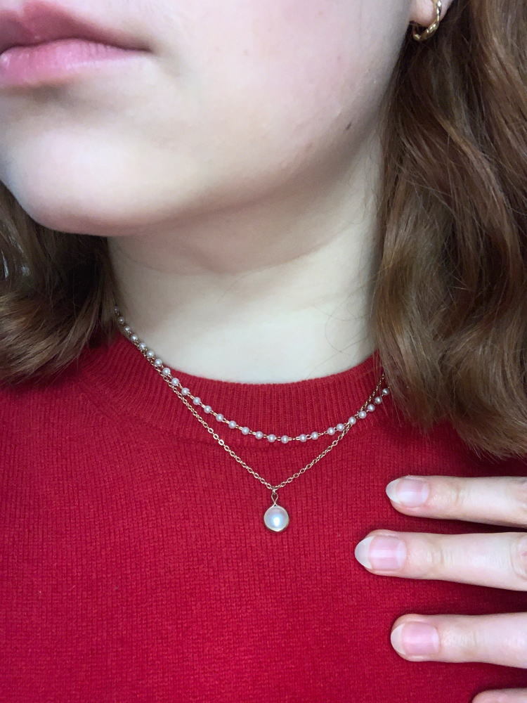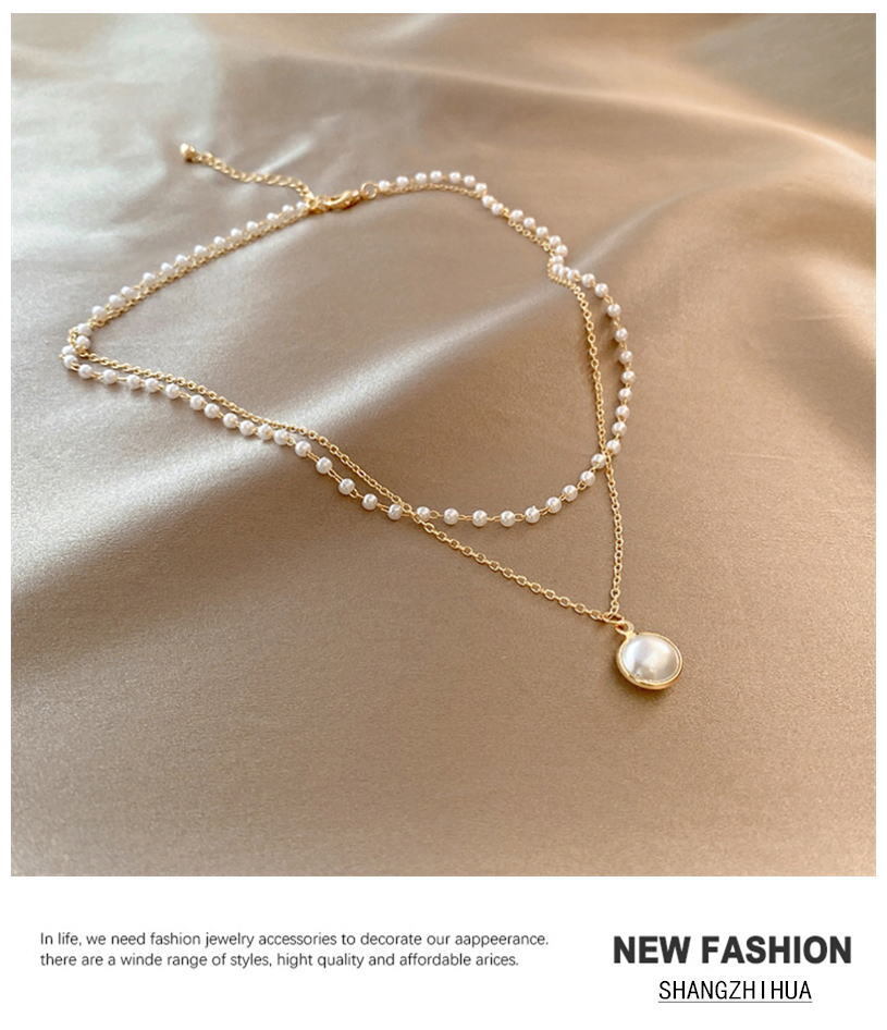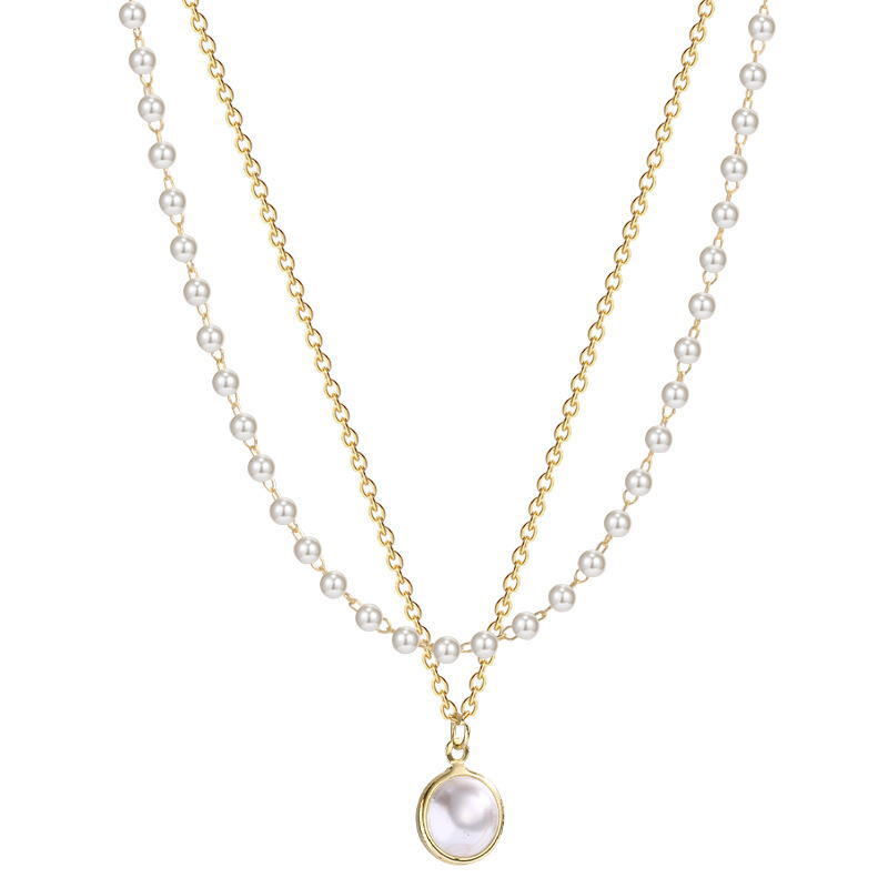 豪華★ダブル♪デザインパールネックレス★ゴールドk18色ヘアまとめ時一点で華やぐ