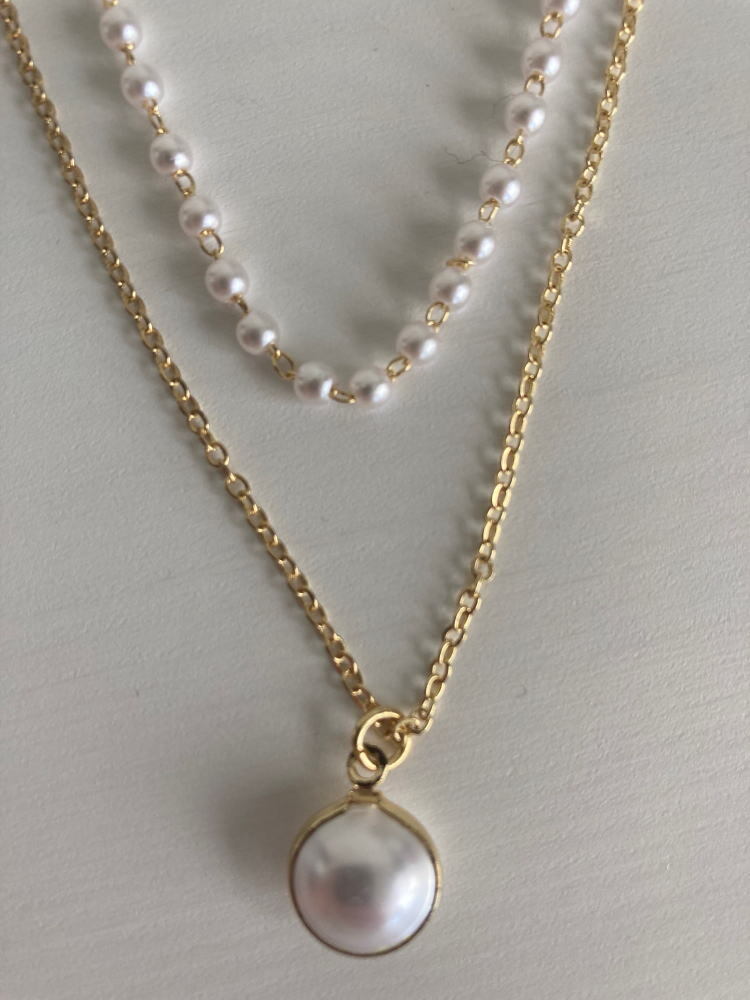 ●ゴールドk18色チェーンにトップには大粒のデザインパールと