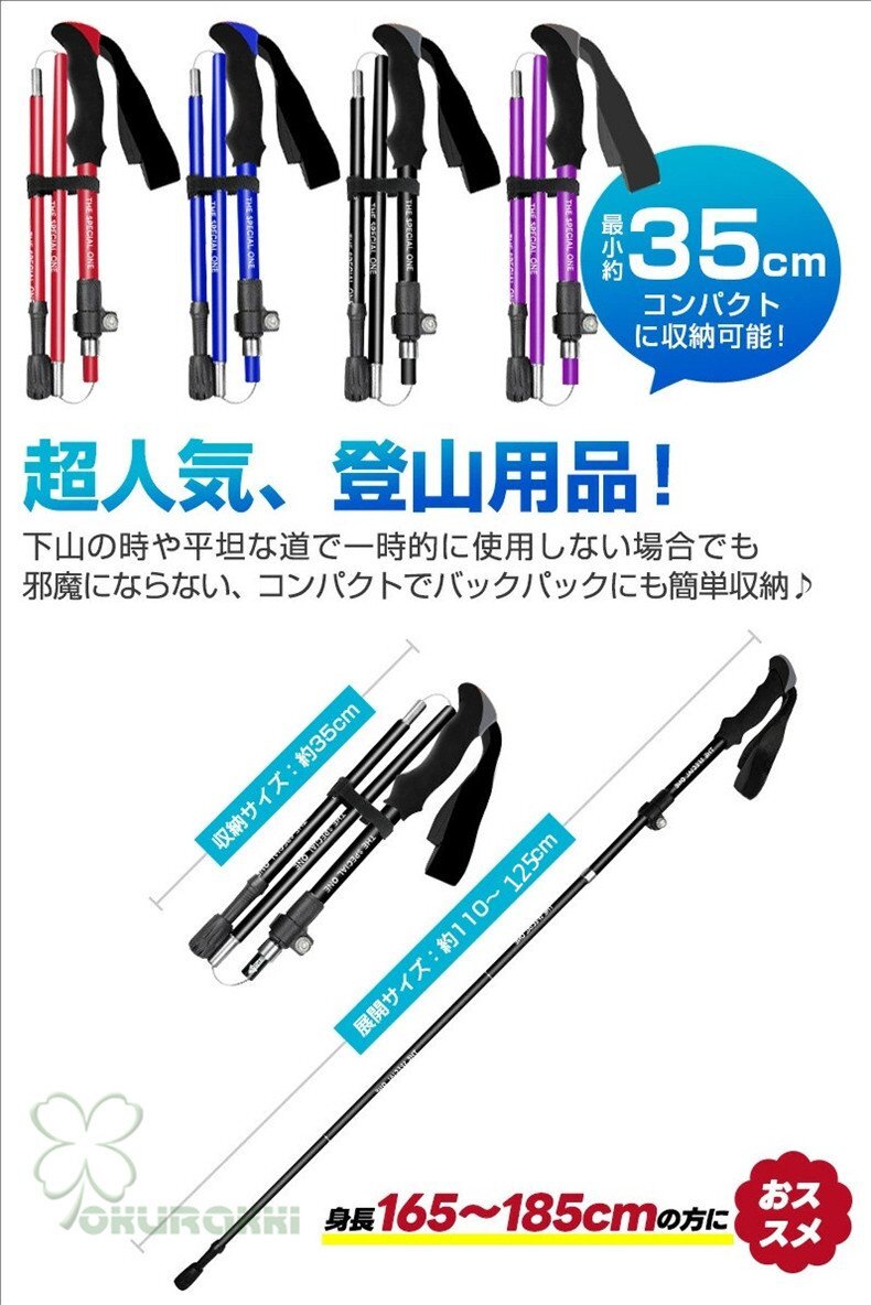 〔商品詳細〕■商品名:I型/五段折畳み式/トレッキングポール■材質:7075アルミ合金、EVA■サイズ:【全長:110cm-125cm】【収納サイズ:35cm】■重量:270g★身長170cm以上の方におすすめ ■数量:2本入■耐荷重:約100kg■製品内容:トレッキングポール、収納袋【商品特徴 】◎歩行にも登山にも使い勝手抜群のトレッキングポール◎組み立ても簡単で、長さの調整も可能◎軽量、コンパクトな収納は持ち運びにも便利◎レジャーのお供に最適なサイズ登山杖