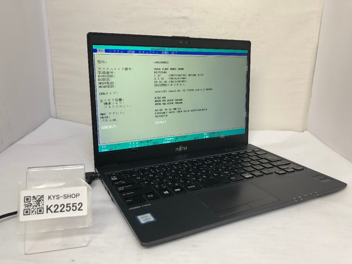 ジャンク/ FUJITSU FMVU14003 LIFEBOOK U938/S Intel Core i5-7300U メモリ8.19GB ストレージ無し 【K22552】
