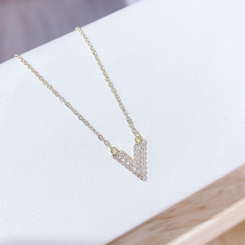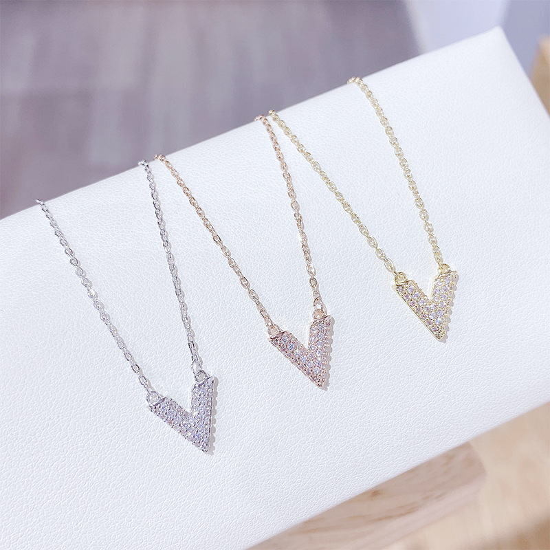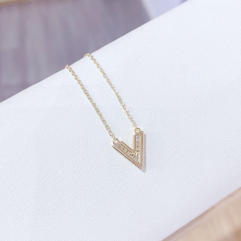 V字czダイヤゴールドk18色ネックレス★小ぶりなのに存在感良し★韓国SNS話題