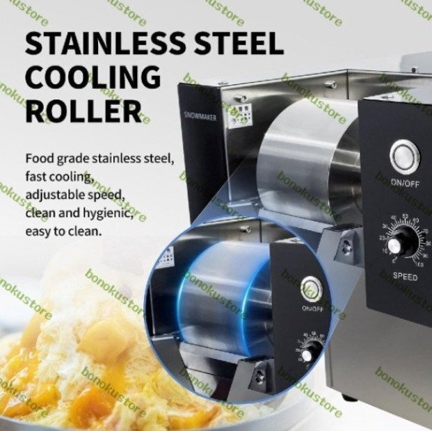 耐久性:アイスシェーバーメーカーマシンは厚いステンレス鋼素材でできており、錆びず、耐久性があり、お手入れが簡単です。食品グレードの304ステンレス鋼の冷凍ローラー、強力な冷凍。