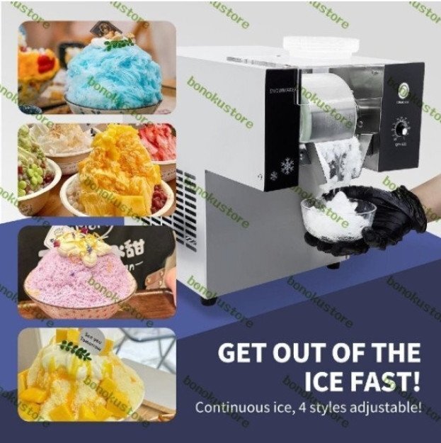 アイスシェーバーマシン:110V/220V 50/60Hz、360W、このマシンは韓国、東南アジアで人気があり、雪の結晶の形をした氷を作ることができます。高速生産により、1 日あたり 80kg/176 ポンドの氷を作ることができ、日常やビジネスでの使用に大量の氷を提供します。