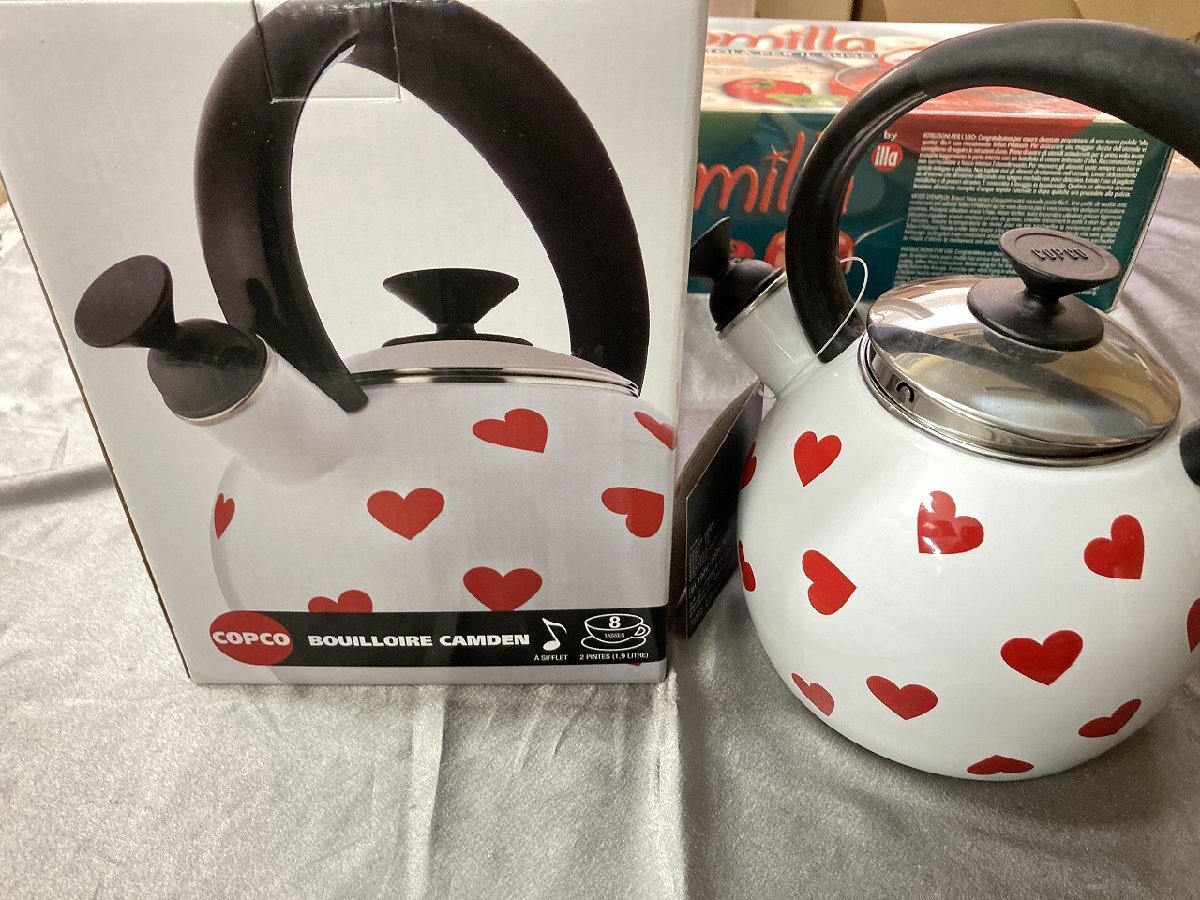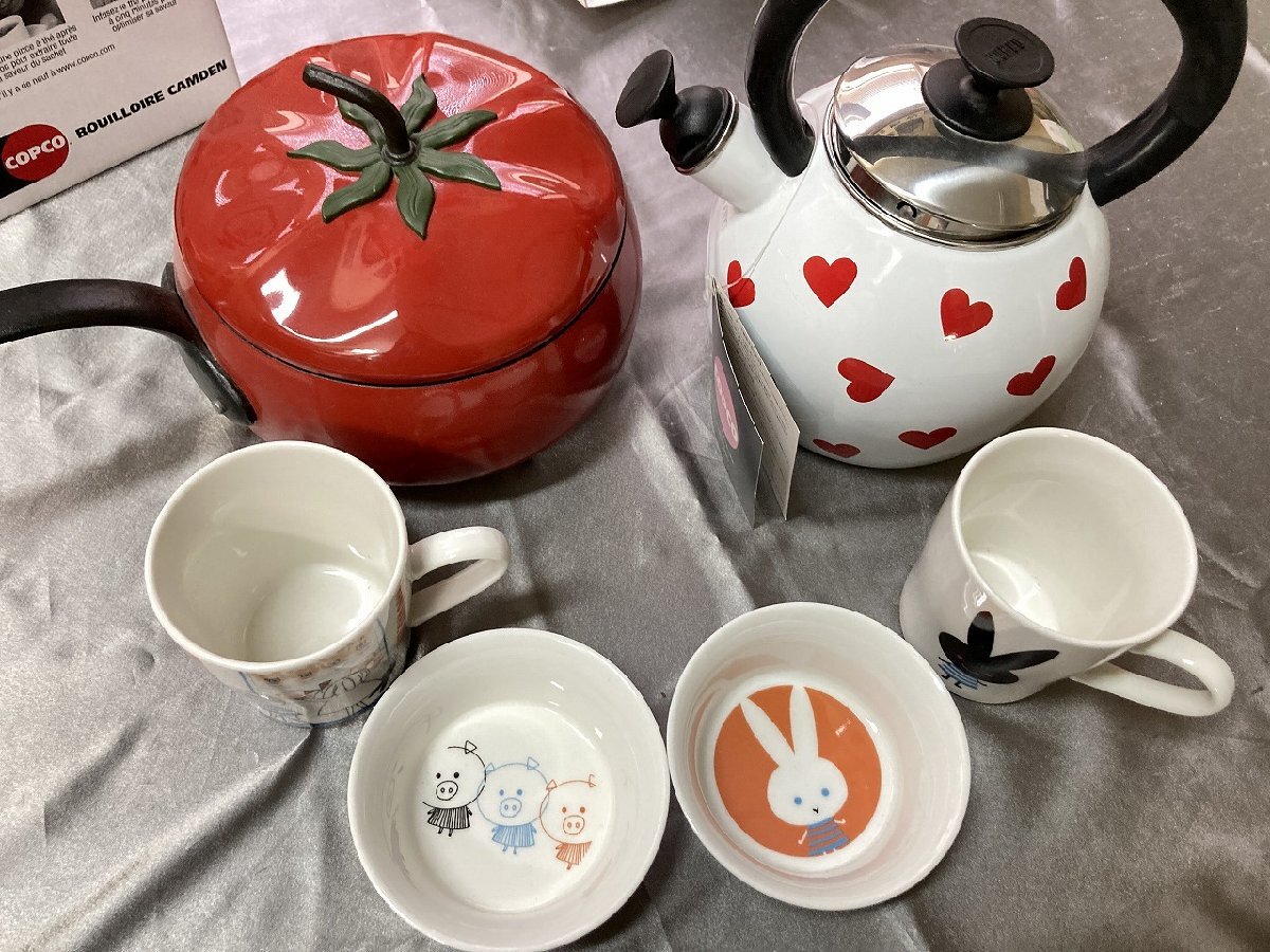 ★ AT ハート柄やかん トマト型小鍋 マグカップ小皿セット×2 まとめ売り シェア 未使用