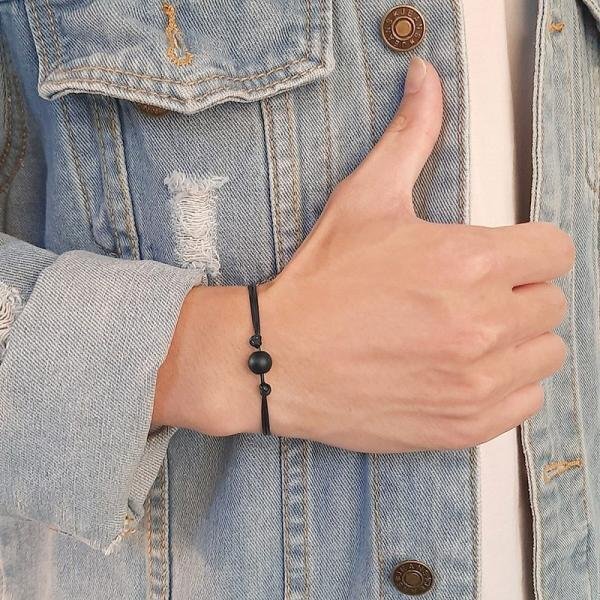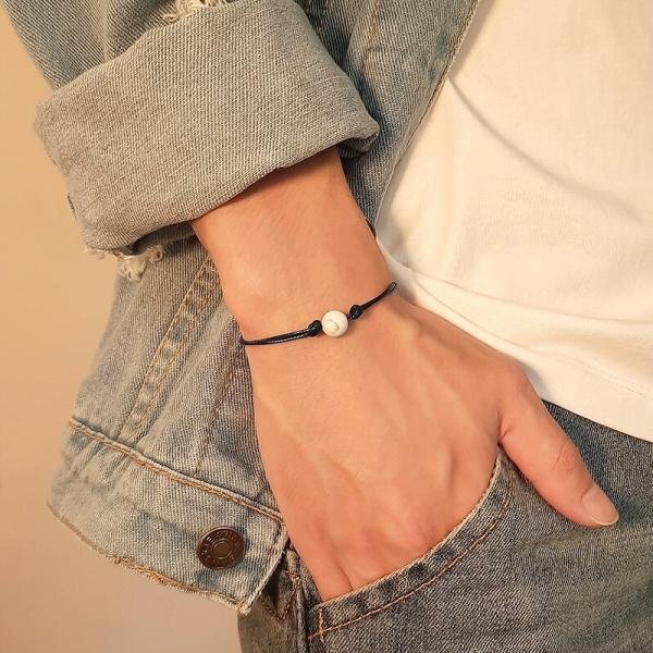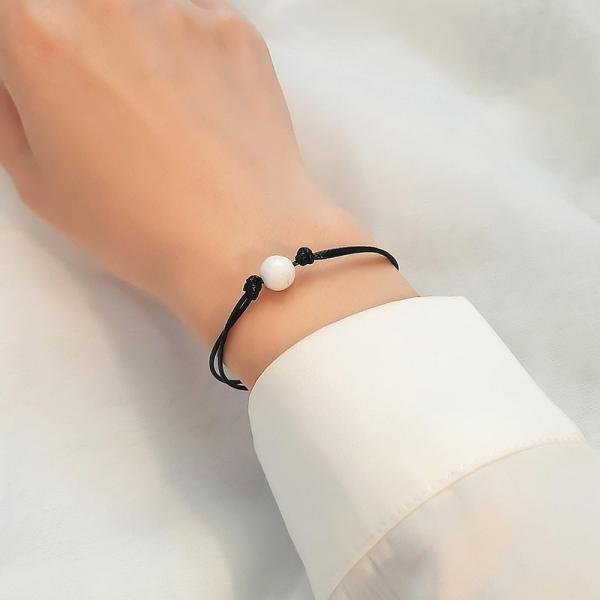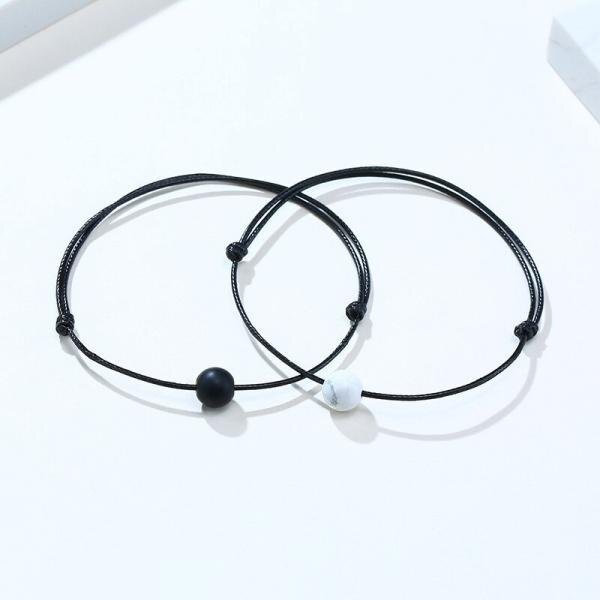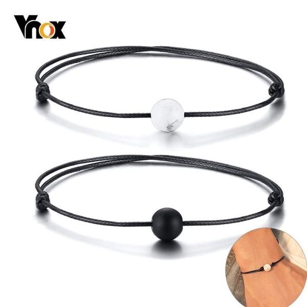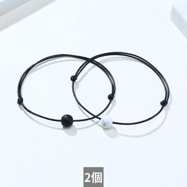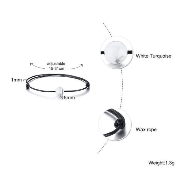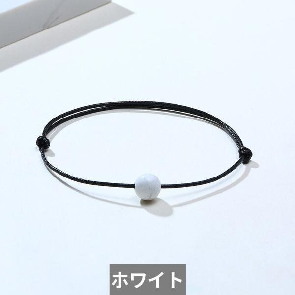 調整可能 ロープ チェーン ブレスレット メンズ 白 ホワイト ブラック ストーン ビーズ バングル シンプル ジュエリー