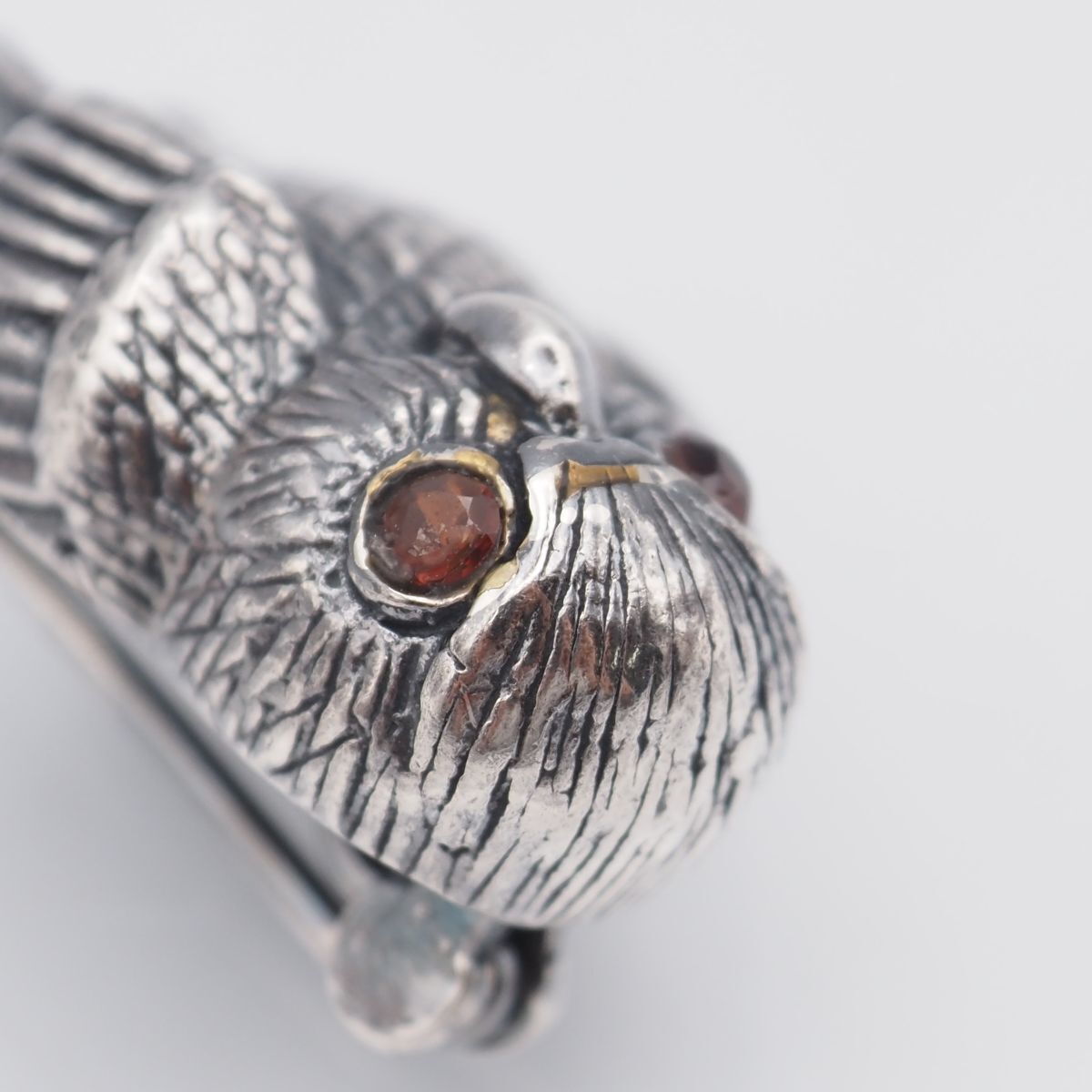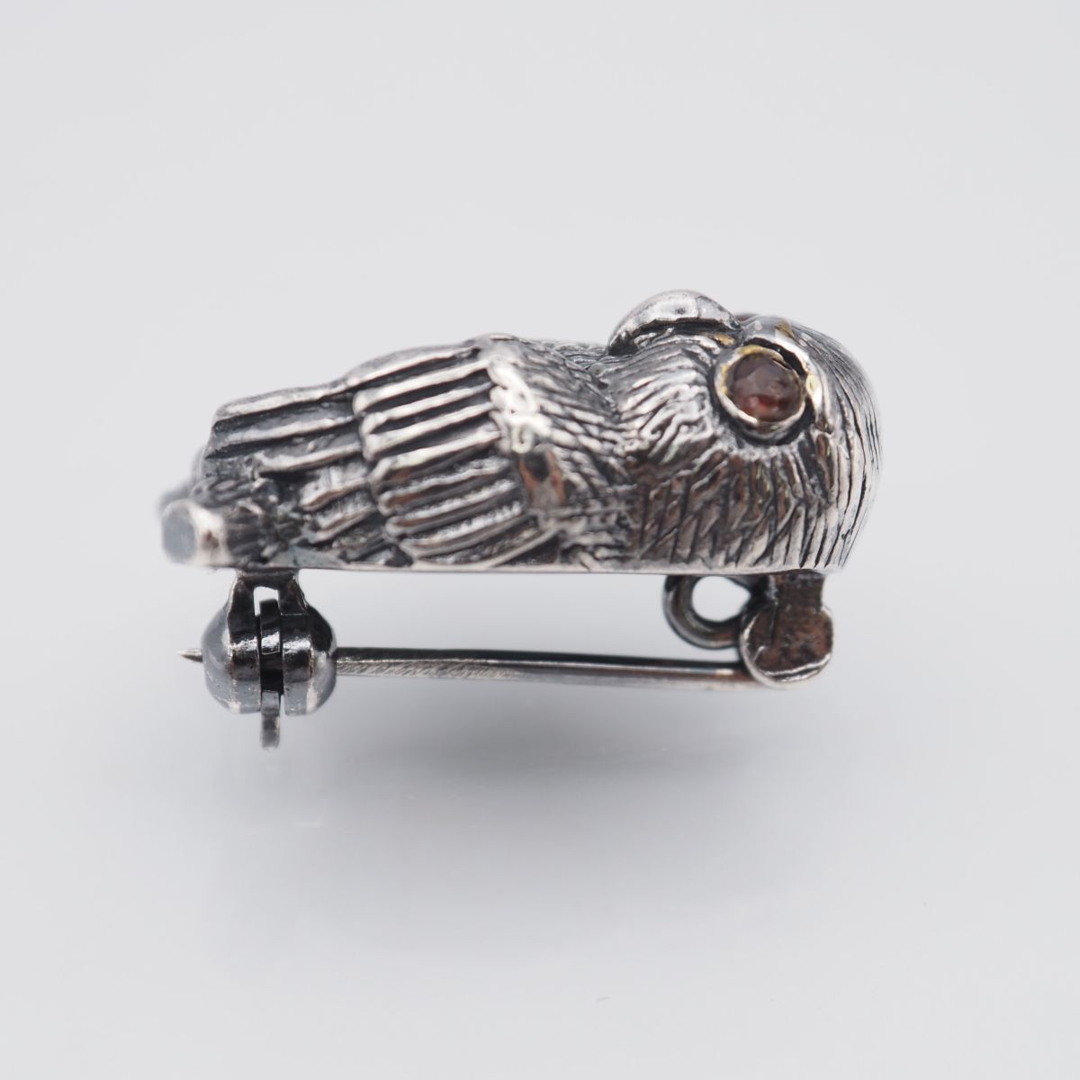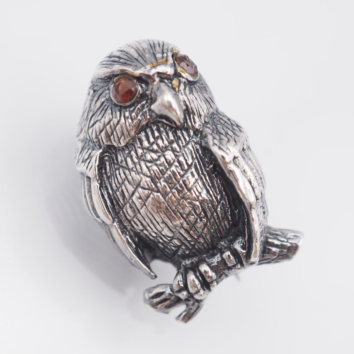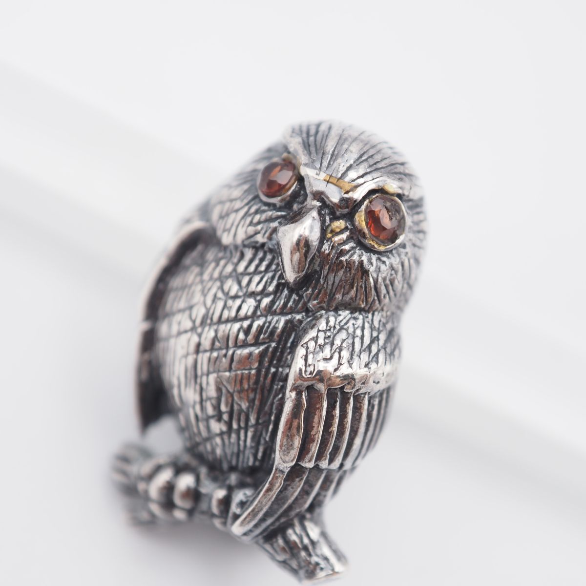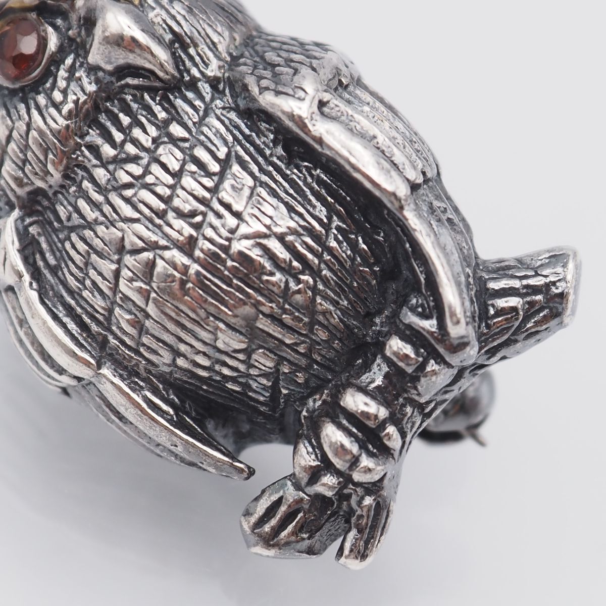 G195 カラーストーン 925刻印 ブローチ 梟 フクロウ デザイン シルバー