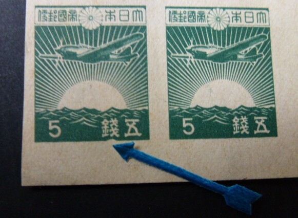 昭和切手 5銭  旭日と戦斗機 田型 (銭の下変種) 未使用 美品 MD-29-6