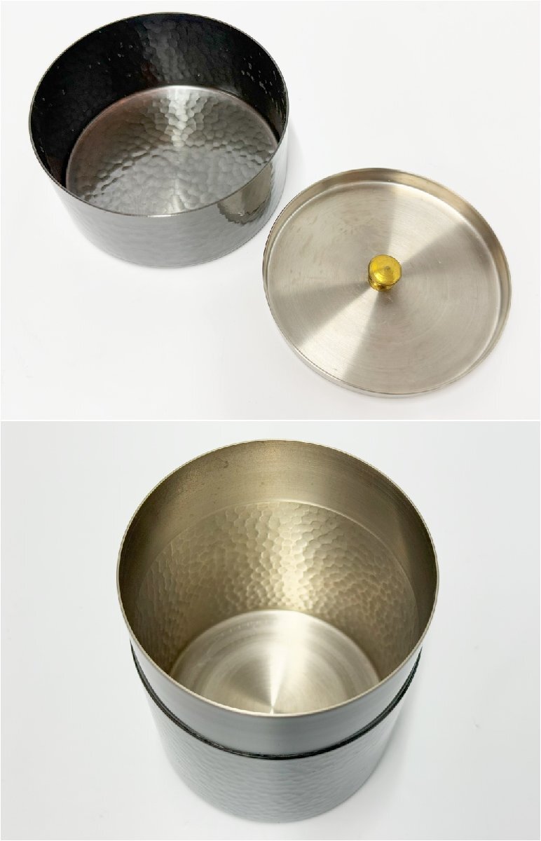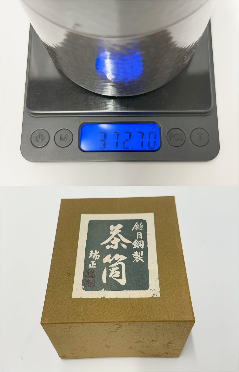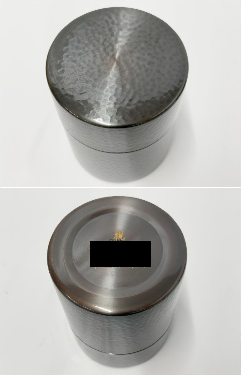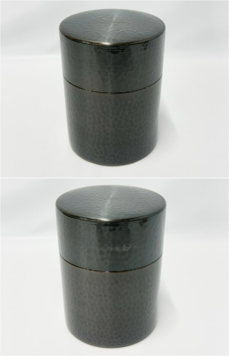 新光堂 在銘 瑞正 茶筒 鎚目銅製 重量 約372g 直径 約9cm 高さ 約12cm 茶器 茶道具 煎茶道具 金属工芸 箱付き 3515G8-4