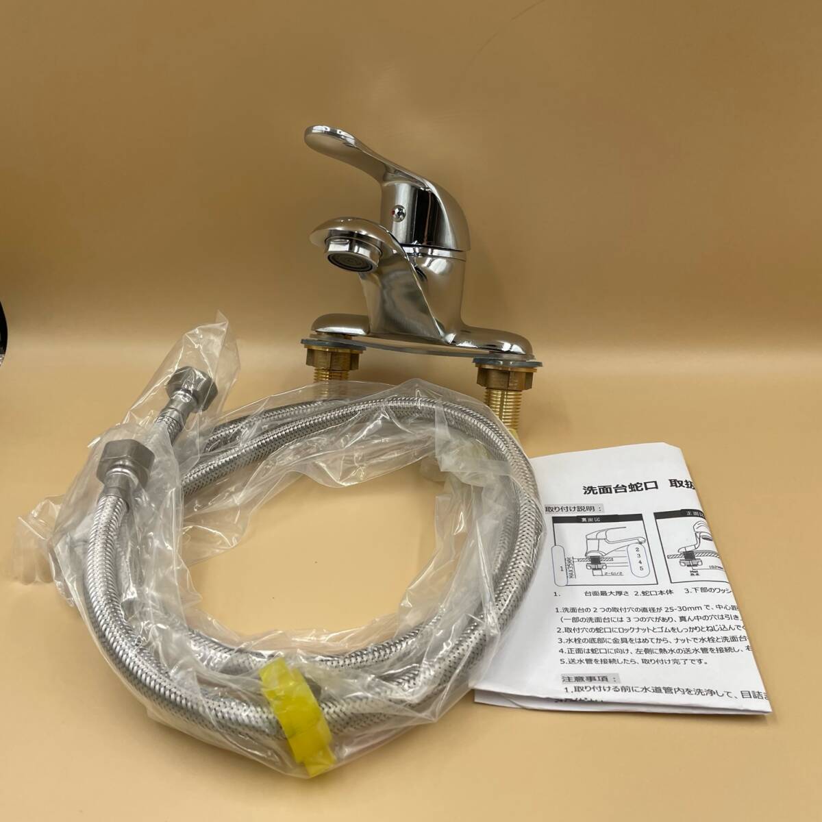 (A) 洗面蛇口 混合水栓 2穴 シングルレバー 洗面台 蛇口 交換 DIY 混合栓 キッチン おしゃれ 水栓金具 2ホール 真鍮