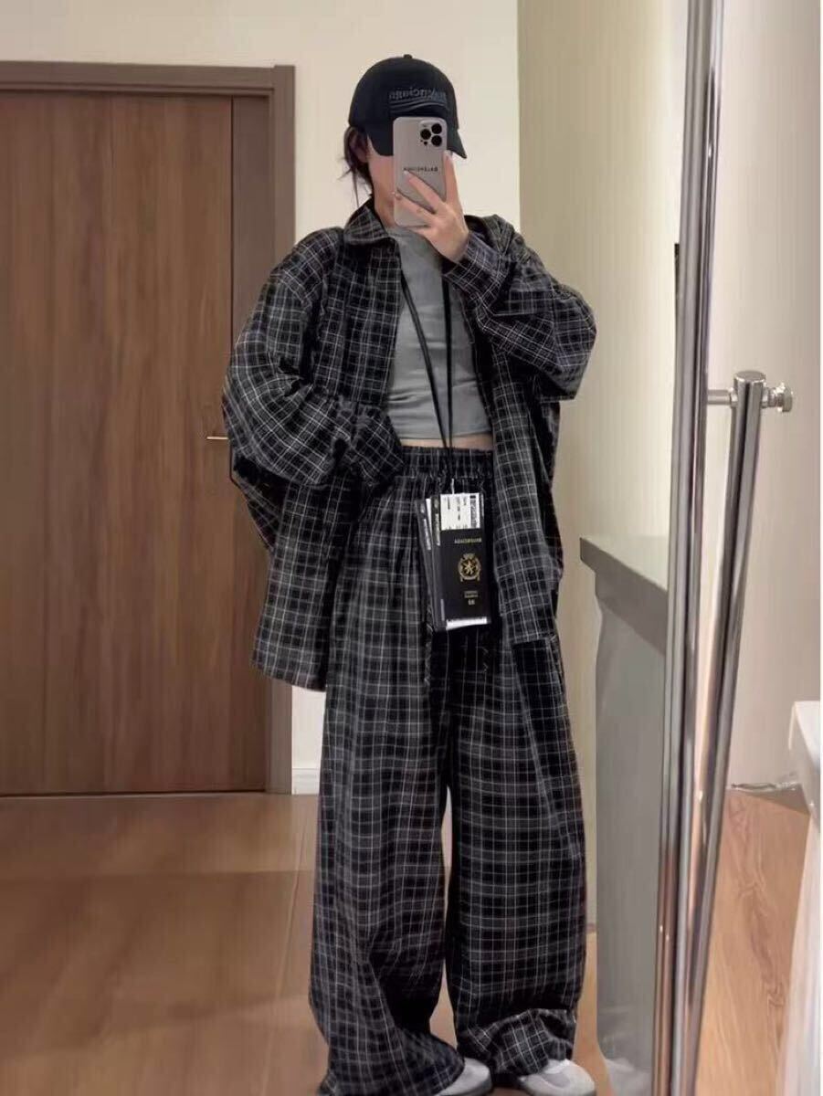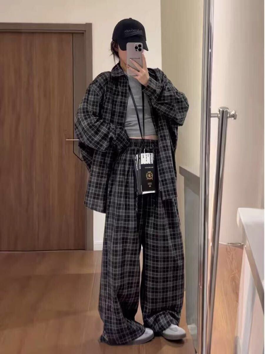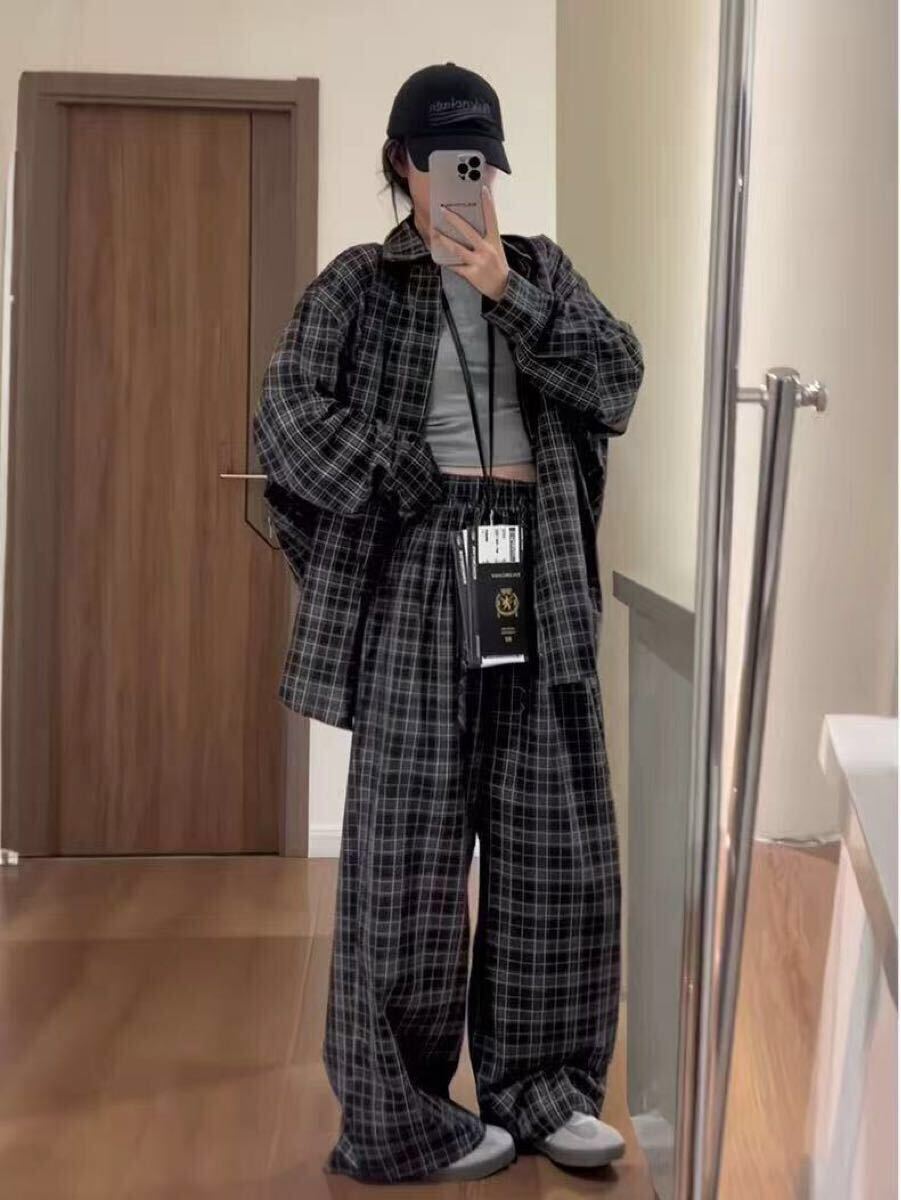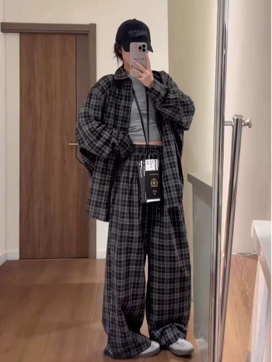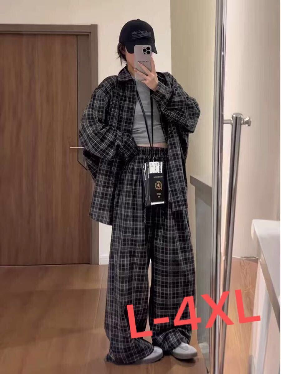 セットアップ レディース 上下セット 大きいサイズ 春 秋 長袖 スポーツウエア チェック柄 トップス+ズボン 2点セット ゆったり ビッグシルエット 可愛い LSGA046(L-4XL)