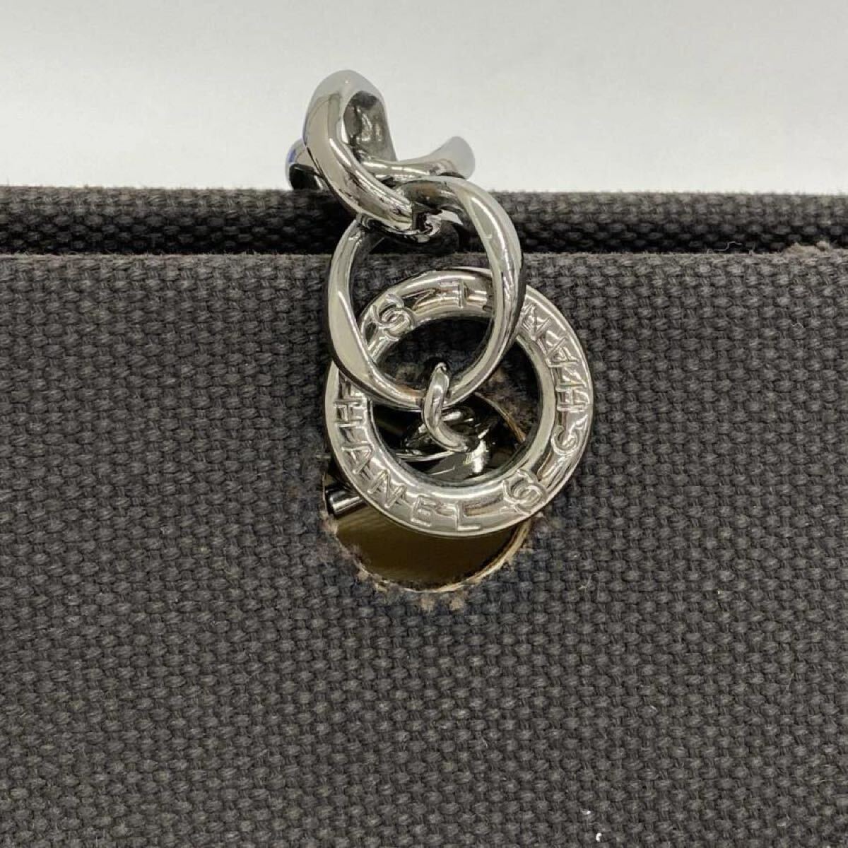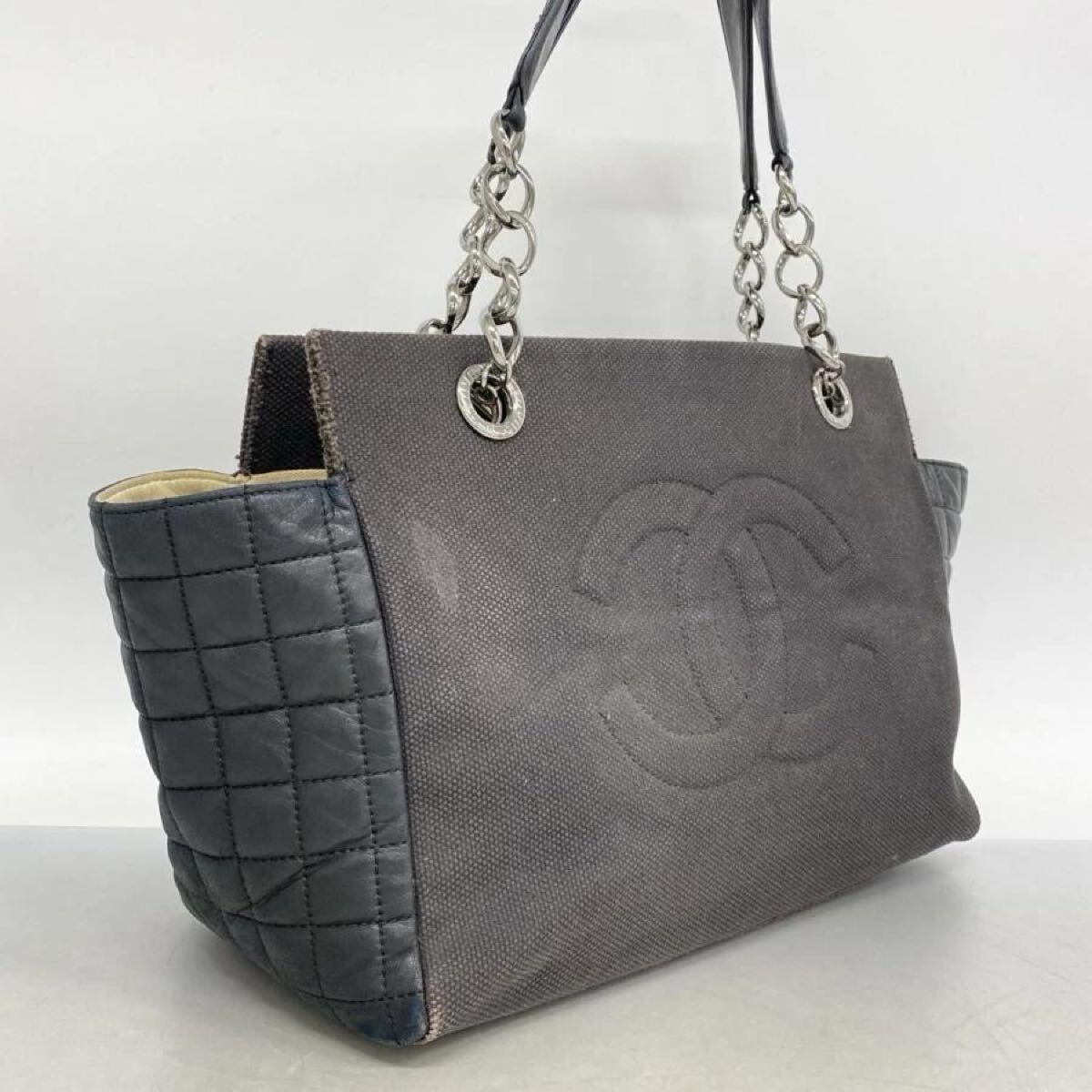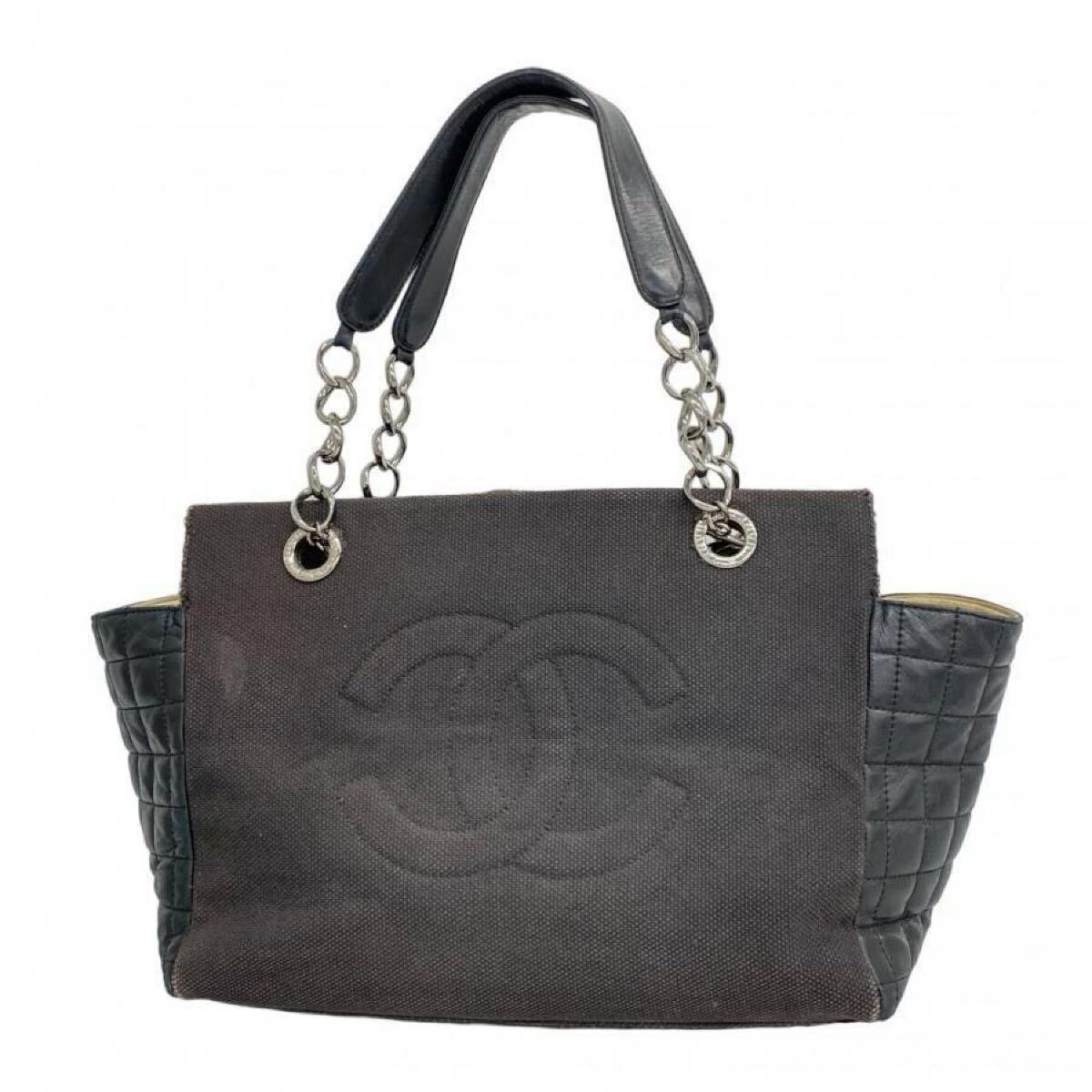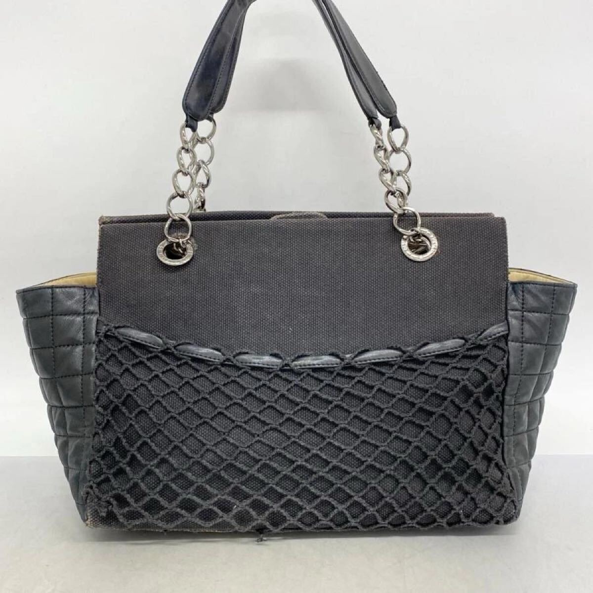 シャネル チョコバー ラムスキンレザー キャンバス トートバッグ ブラック