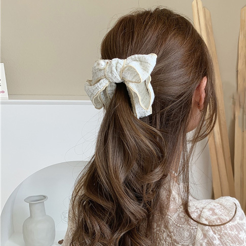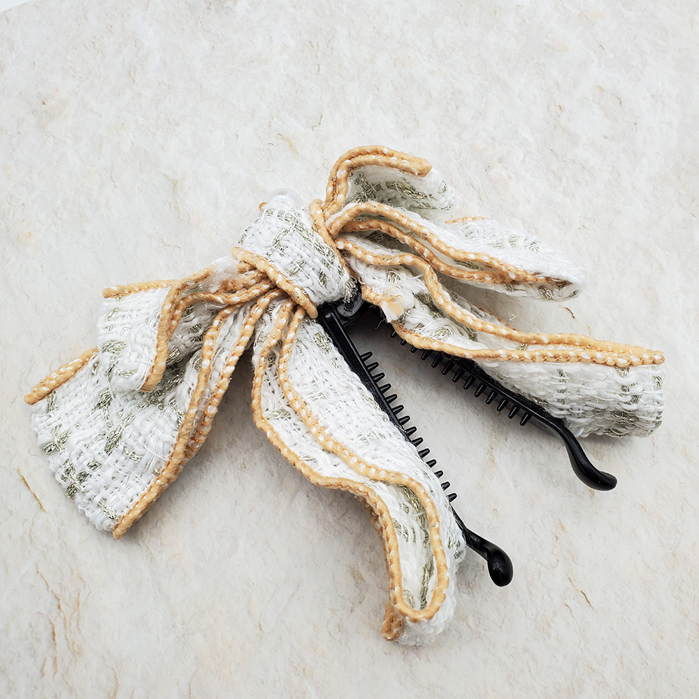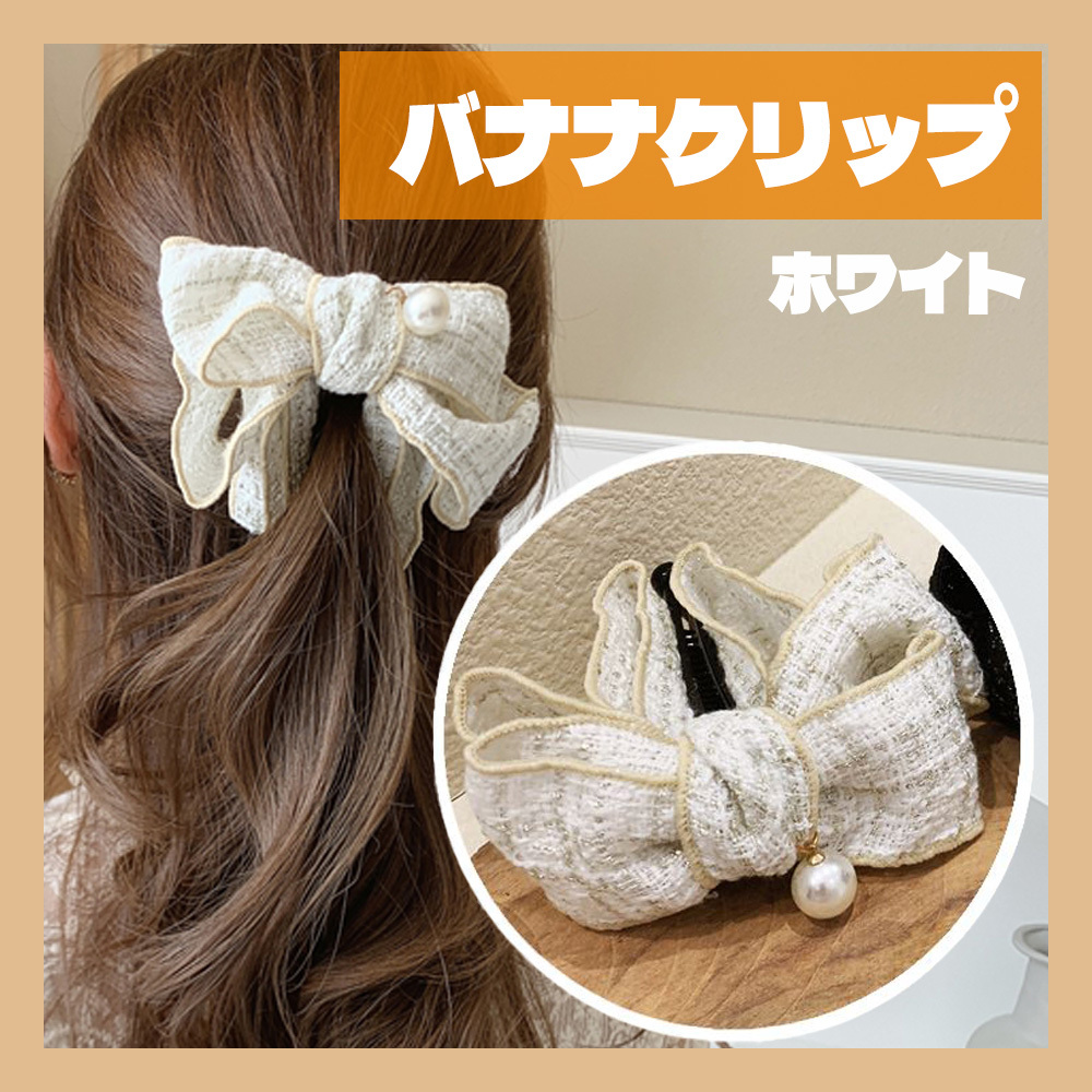 ツイードのリボンがおしゃれなバナナクリップ♪