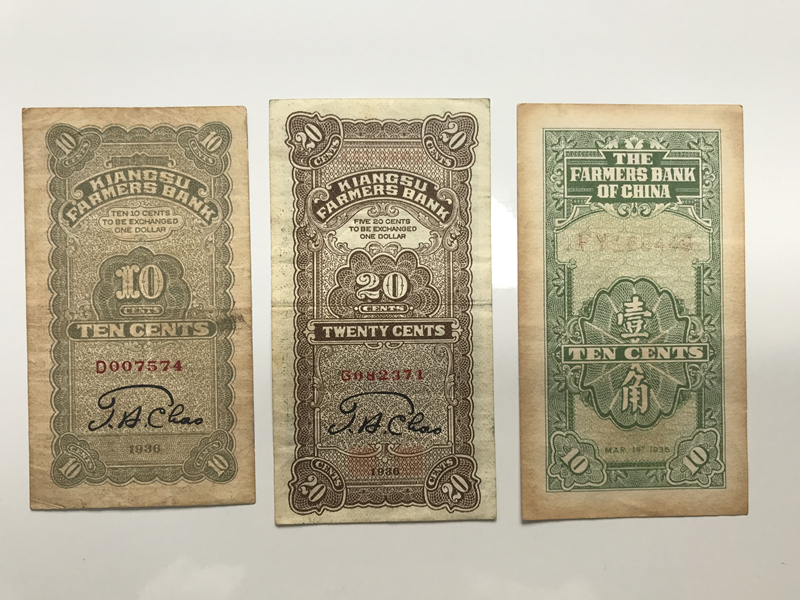 中国農民銀行 江蘇省農民銀行 紙幣3枚 中華民国 旧紙幣 古札 古紙幣 紙幣 貨幣 希少