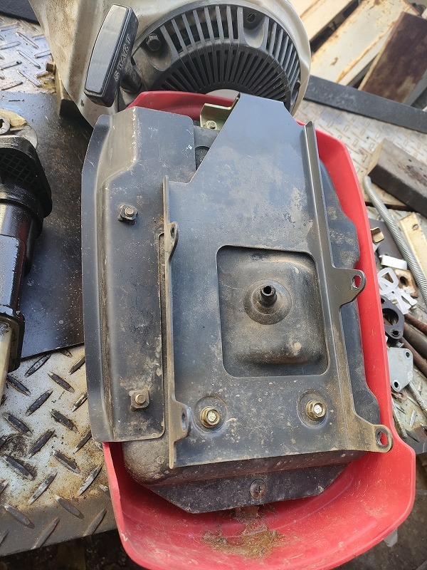 〇焼き付いてしまったものからの取り外しです。赤いカバーは割れていますが、タンク自体は問題ないと思います。燃料計は壊れているものとお考え下さい。