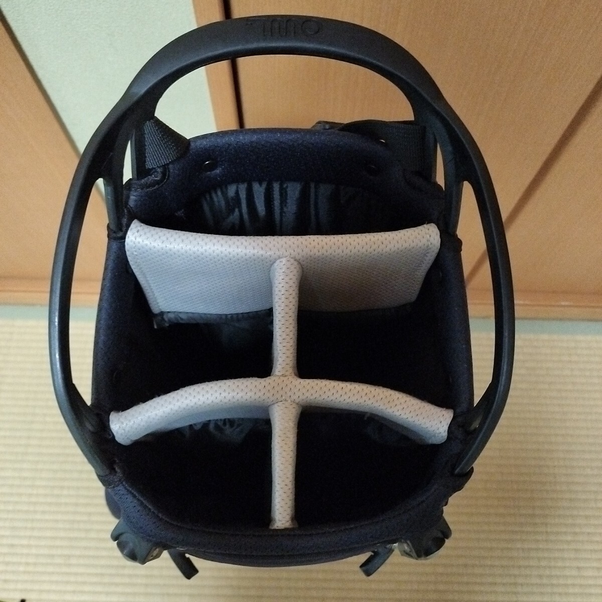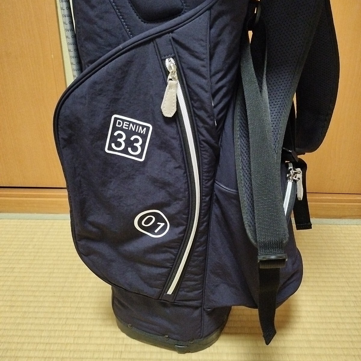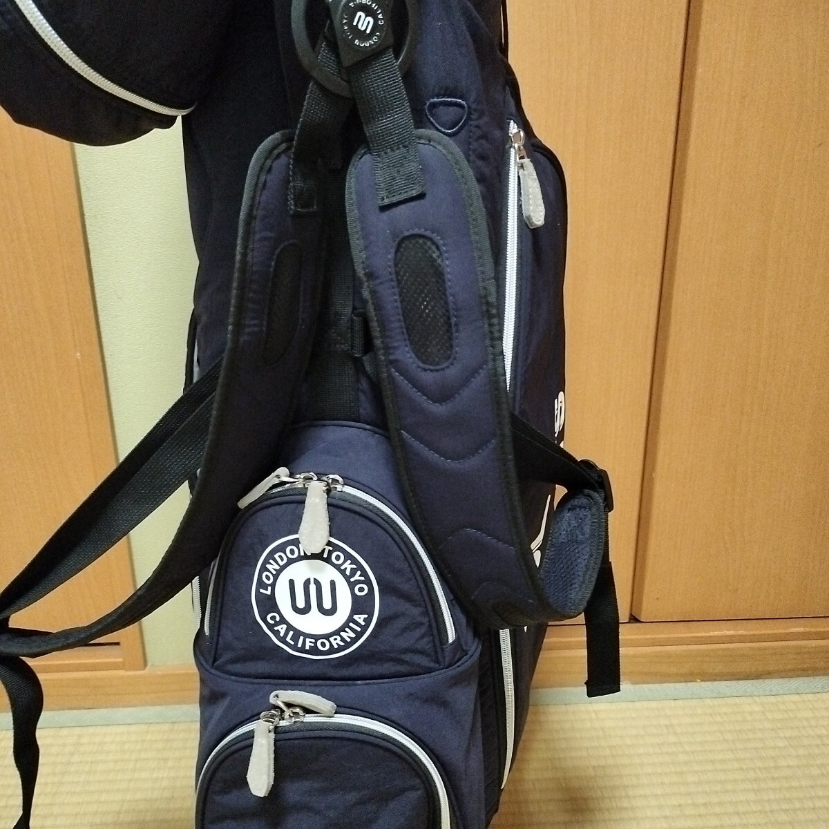担ぎ用に購入しましたが別のタイプのキャディバッグにしましたので出品します。オウルの日本未発売モデルと思います。紺色で高級感のある素材でできています。特に破れ、ファスナー等問題ないと思います。フードあります。 口径5分割、セパレートあり