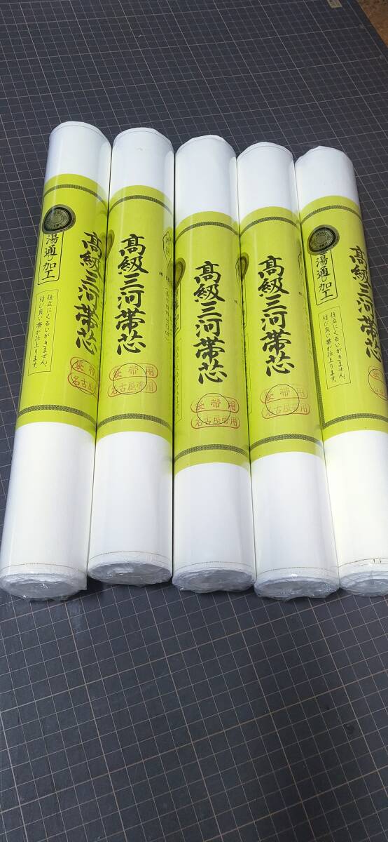 三河帯芯の製造メーカーです。当社の織物機械で織り上げた綿の帯芯です。万能の帯芯です。(250g以上/本)少しだけ織物のきずや汚れがあり呉服店様には出荷できませんので出品させていただきました。丸巻にしてあります
