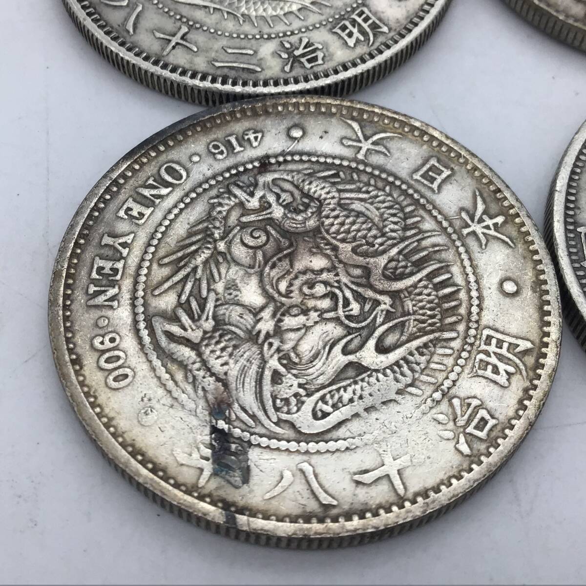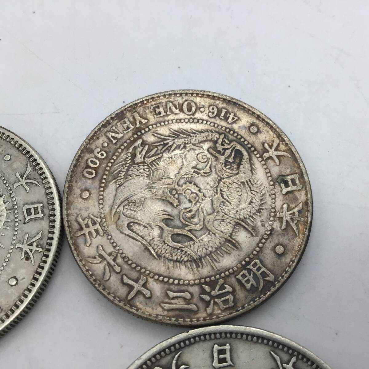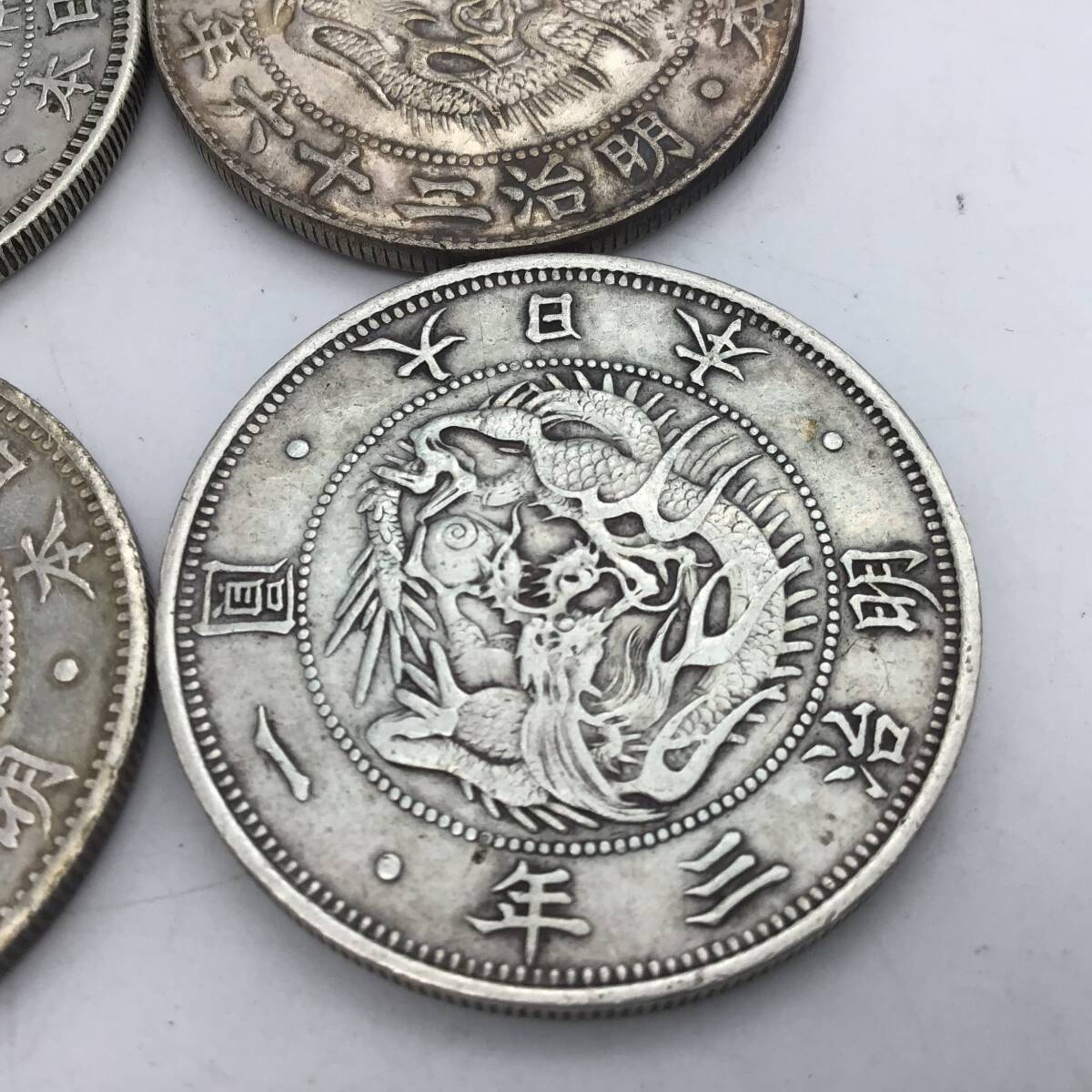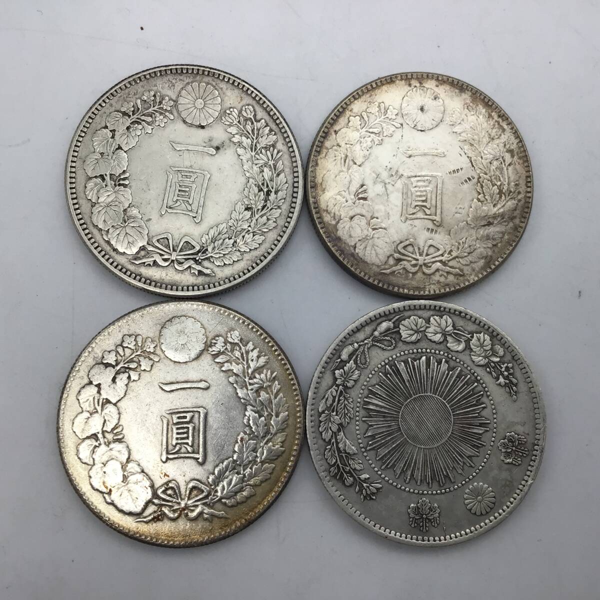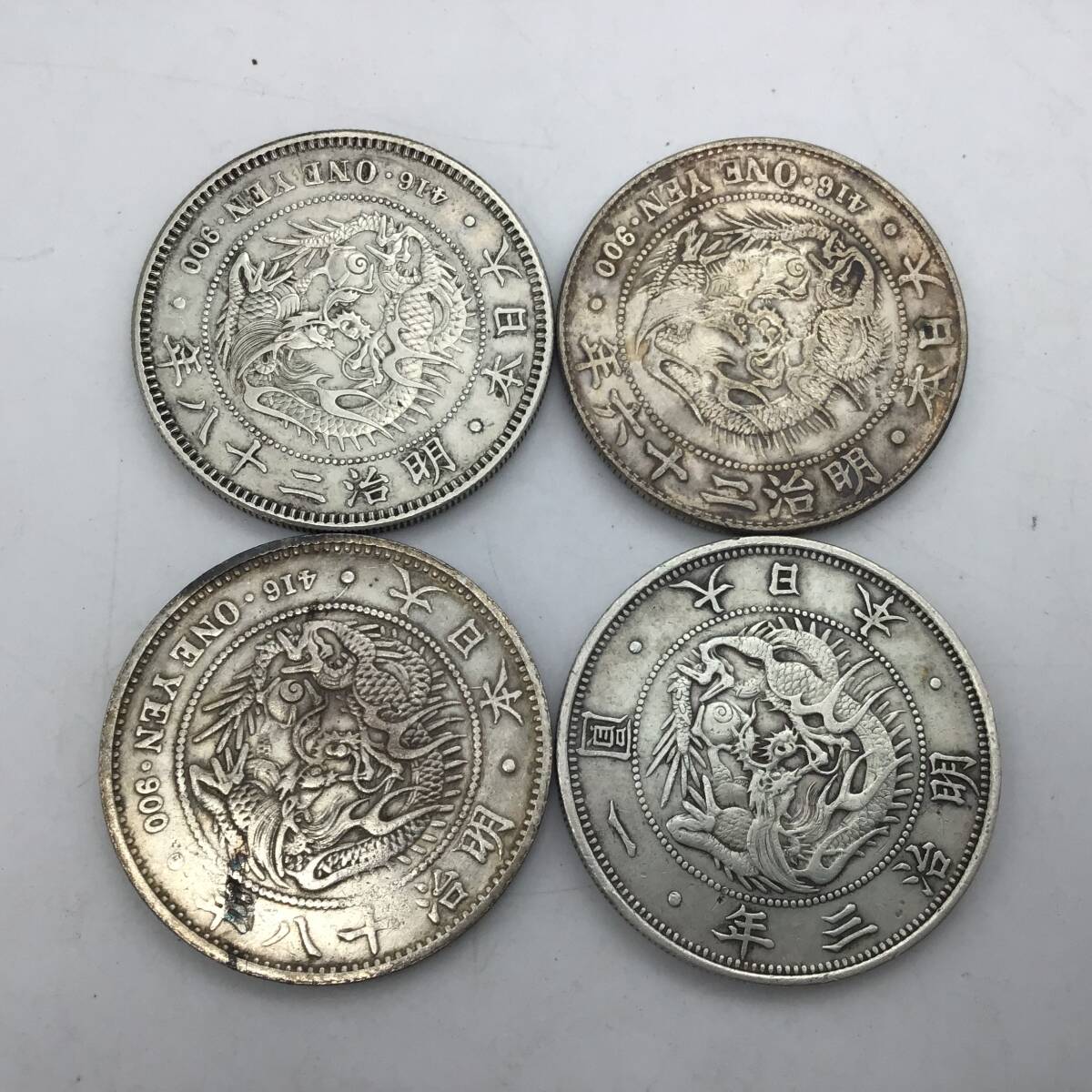 #2446 一円銀貨 明治28*26*18*3年 おまとめ4枚 一圓 銀貨 硬貨 古銭 大日本 貿易銀 菊紋 龍 銀貨 貿易銀 コレクション アンティーク