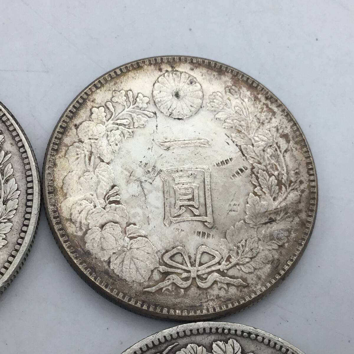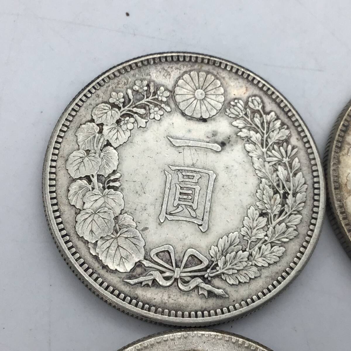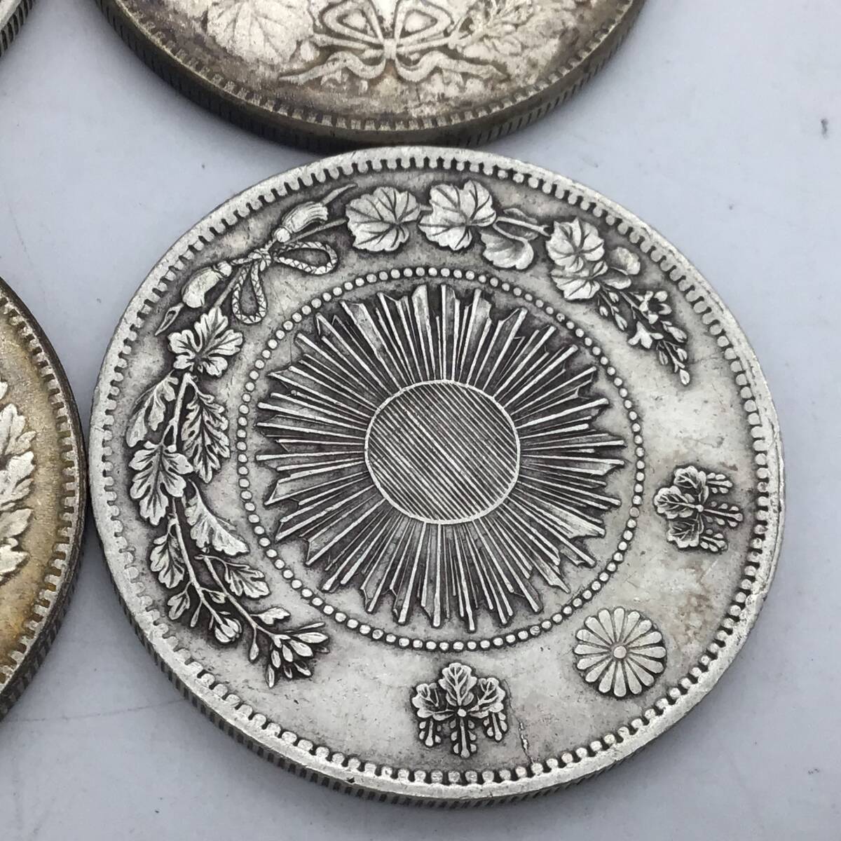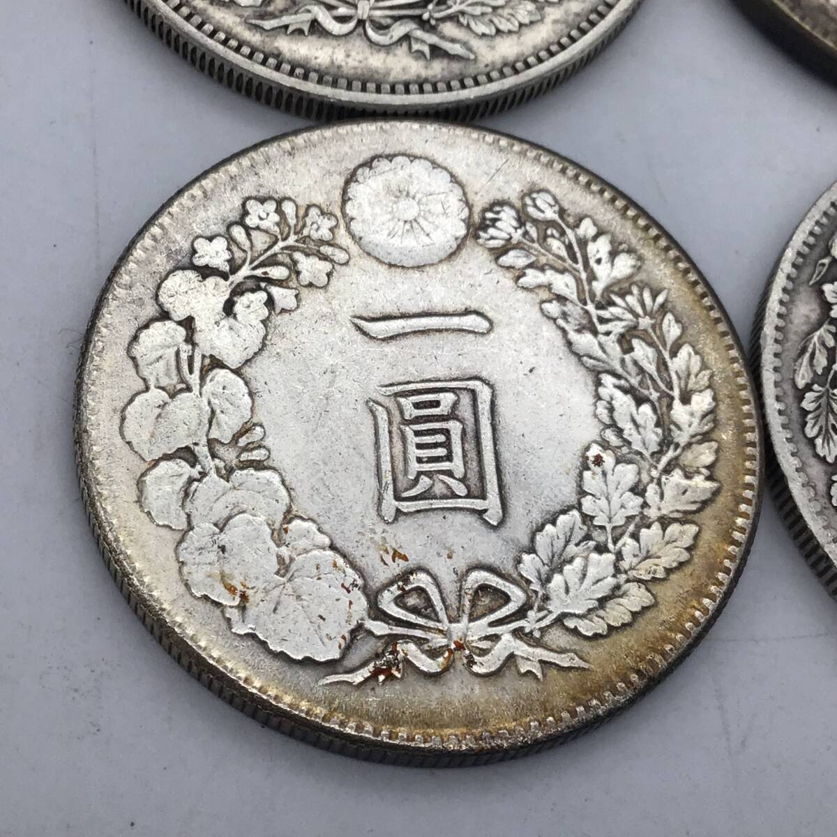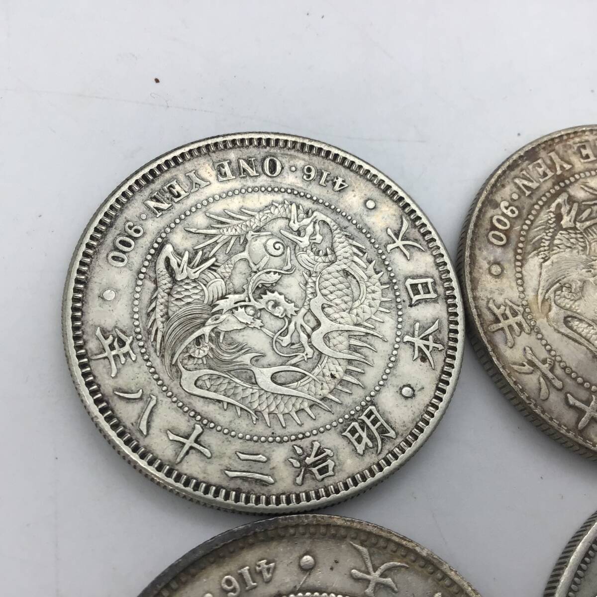 #2446 一円銀貨 明治28*26*18*3年 おまとめ4枚 一圓 銀貨 硬貨 古銭 大日本 貿易銀 菊紋 龍 銀貨 貿易銀 コレクション アンティーク