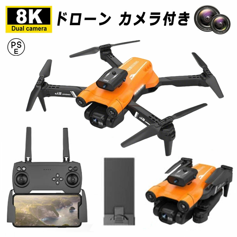 新型 ドローン 8K 二重 カメラ付き バッテリー2個付き 200g以下 高画質 FPV 高度維持 ホーム スマホ操作 初心者 子供 日本語説明書