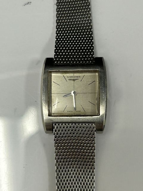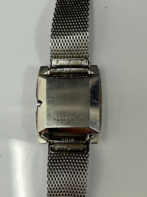 ■A103609:LONGINES ロンジン 7614 手巻き アナログ スクエア レディース 腕時計 シルバー系 リューズ破損 不動 ジャンク