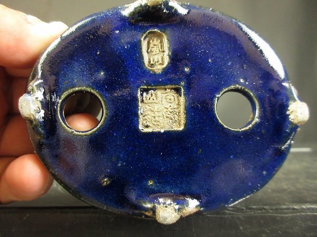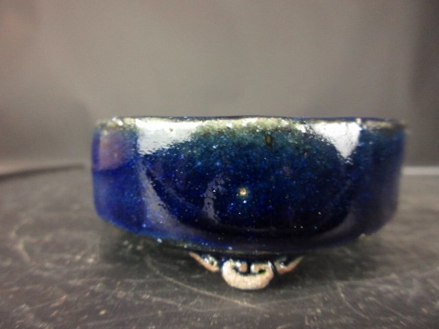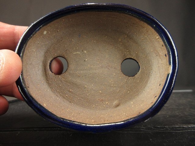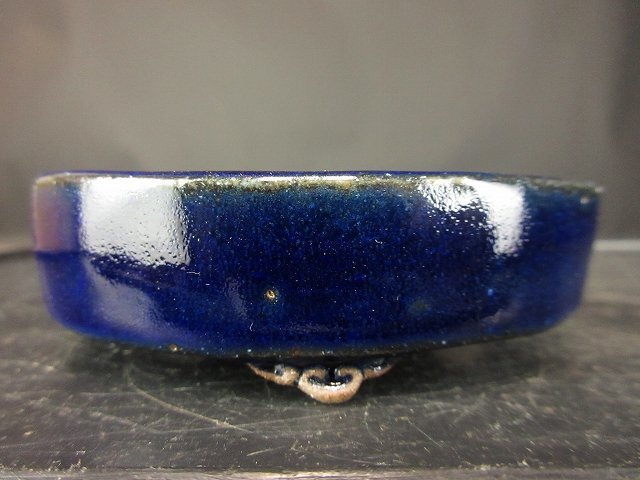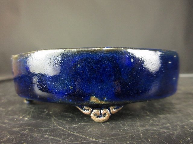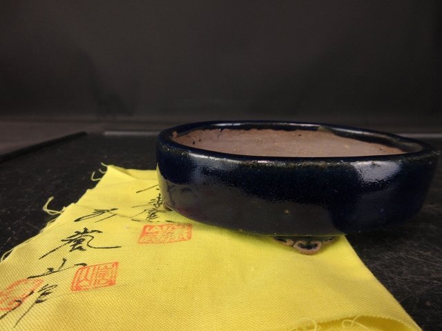 【盆栽 樂屋】◆谷嵐山 瑠璃釉雲足楕円鉢 A87 (小品)(人気作家)(未使用品)(共布)◆10/11