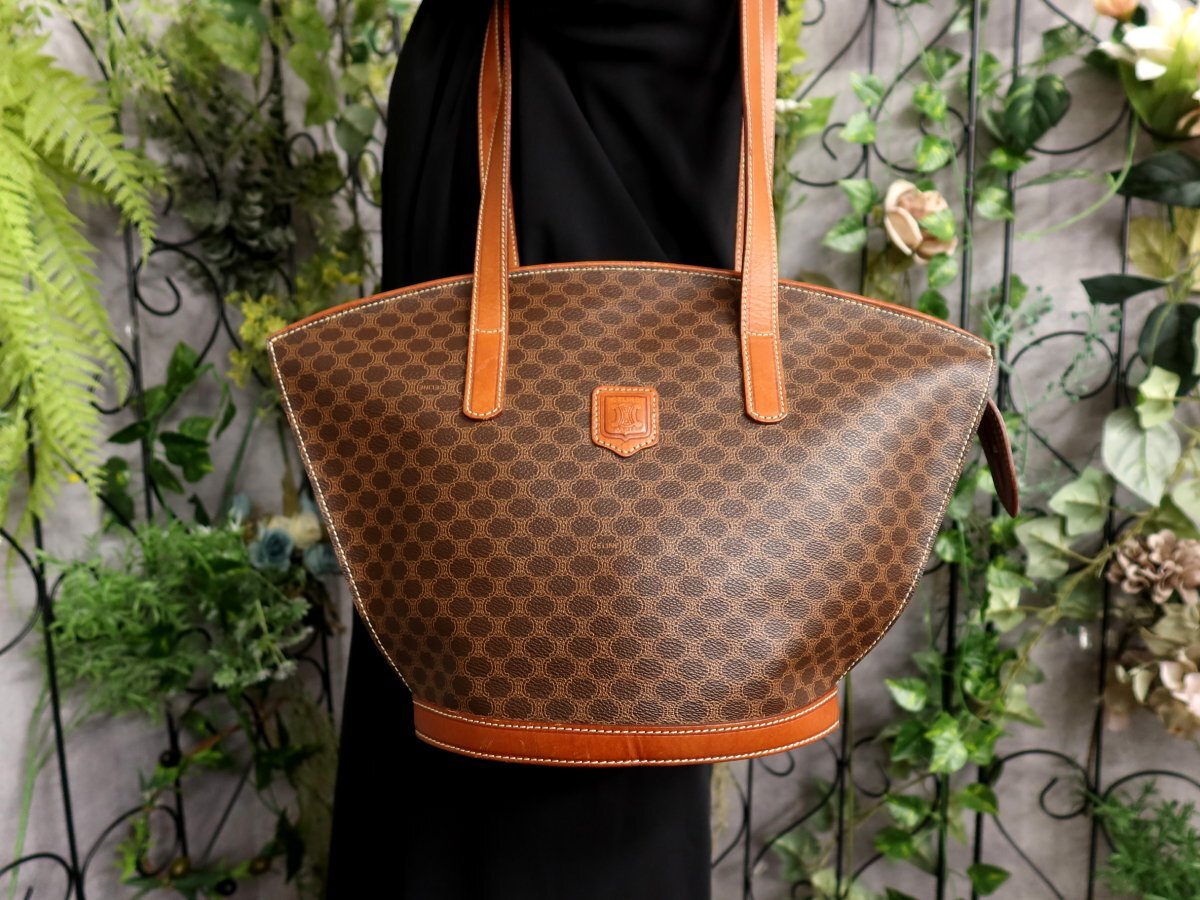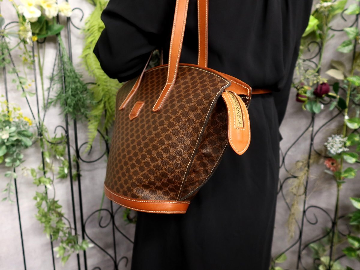 超美品●CELINE セリーヌ●マカダム柄●PVC カーフ レザー 本革●ショルダー バッグ●茶系●ゴールド金具●ヴィンテージ●肩掛け●Js61161
