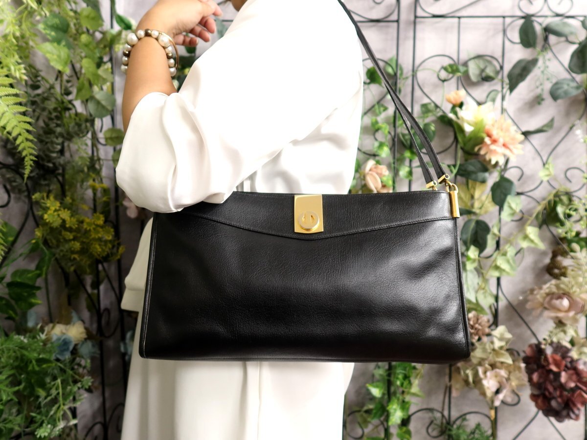 ●超美品●Christian Dior クリスチャン・ディオール●カーフ レザー 本革●ショルダー バッグ●黒●ゴールド金具●ヴィンテージ●Js61113