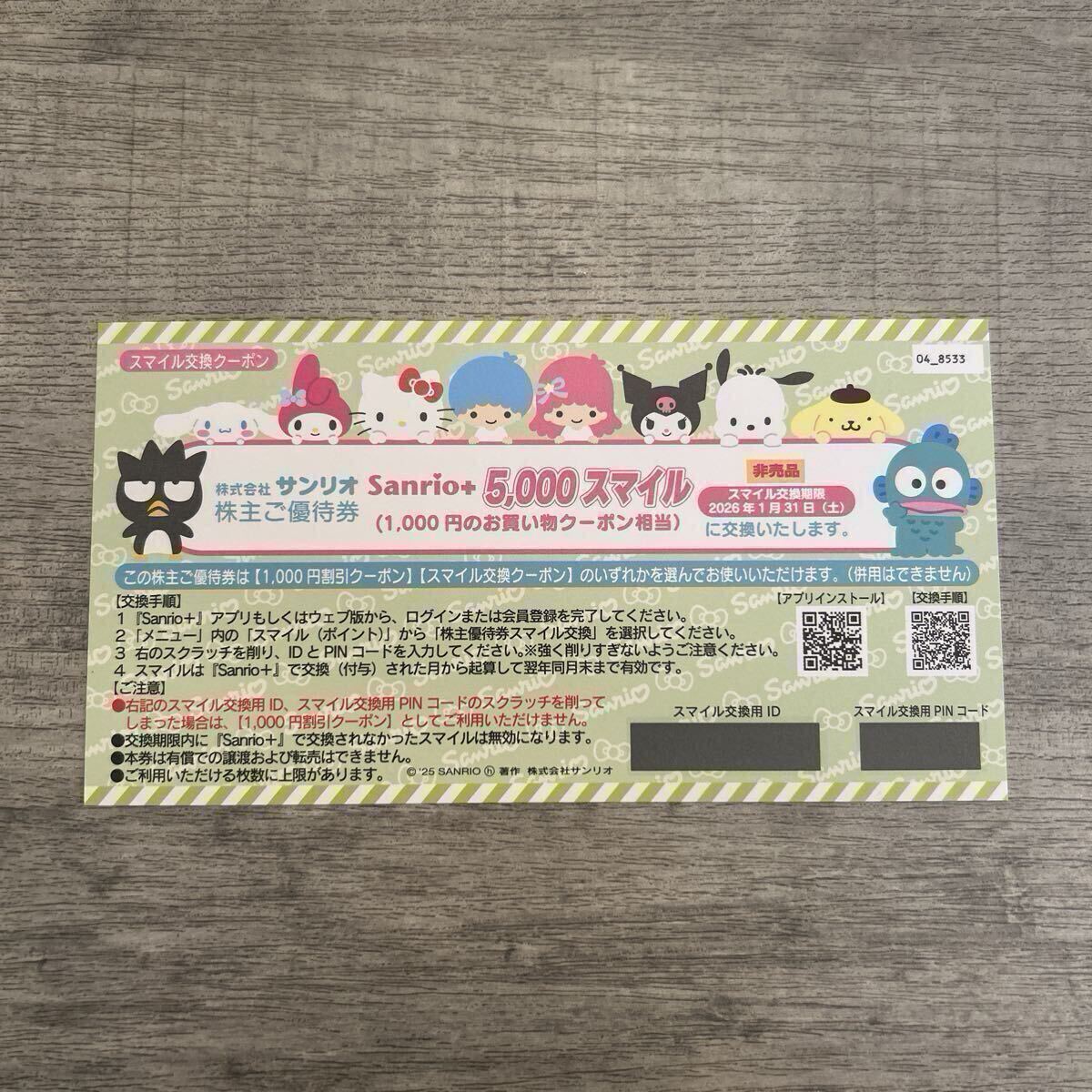 サンリオショップ1000円分またはSanrio+5000スマイル交換ご優待券です。