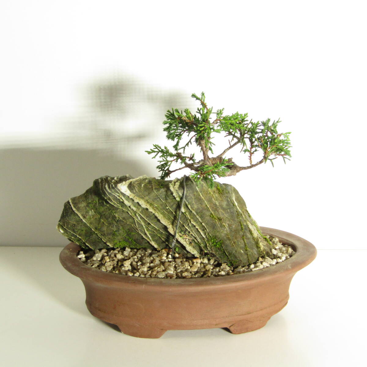 ・石は植え替えや日常のお手入れに支障がでないよう完全に固定されておりませんので多少ぐらつく場合がございますが生育には一切問題ございません。(※石付きミニ盆栽のみ適用)
