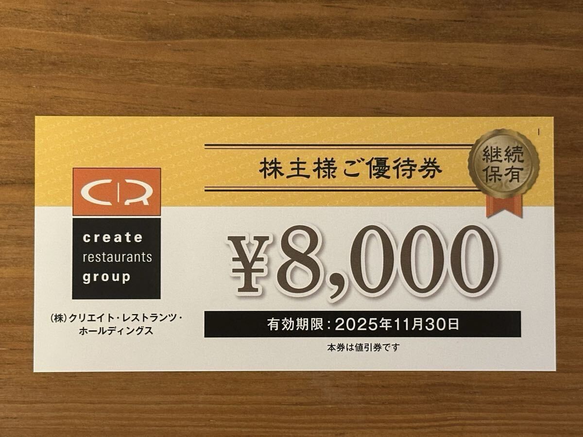 クリエイトレストランツ株主優待券 8,000円分を出品します。