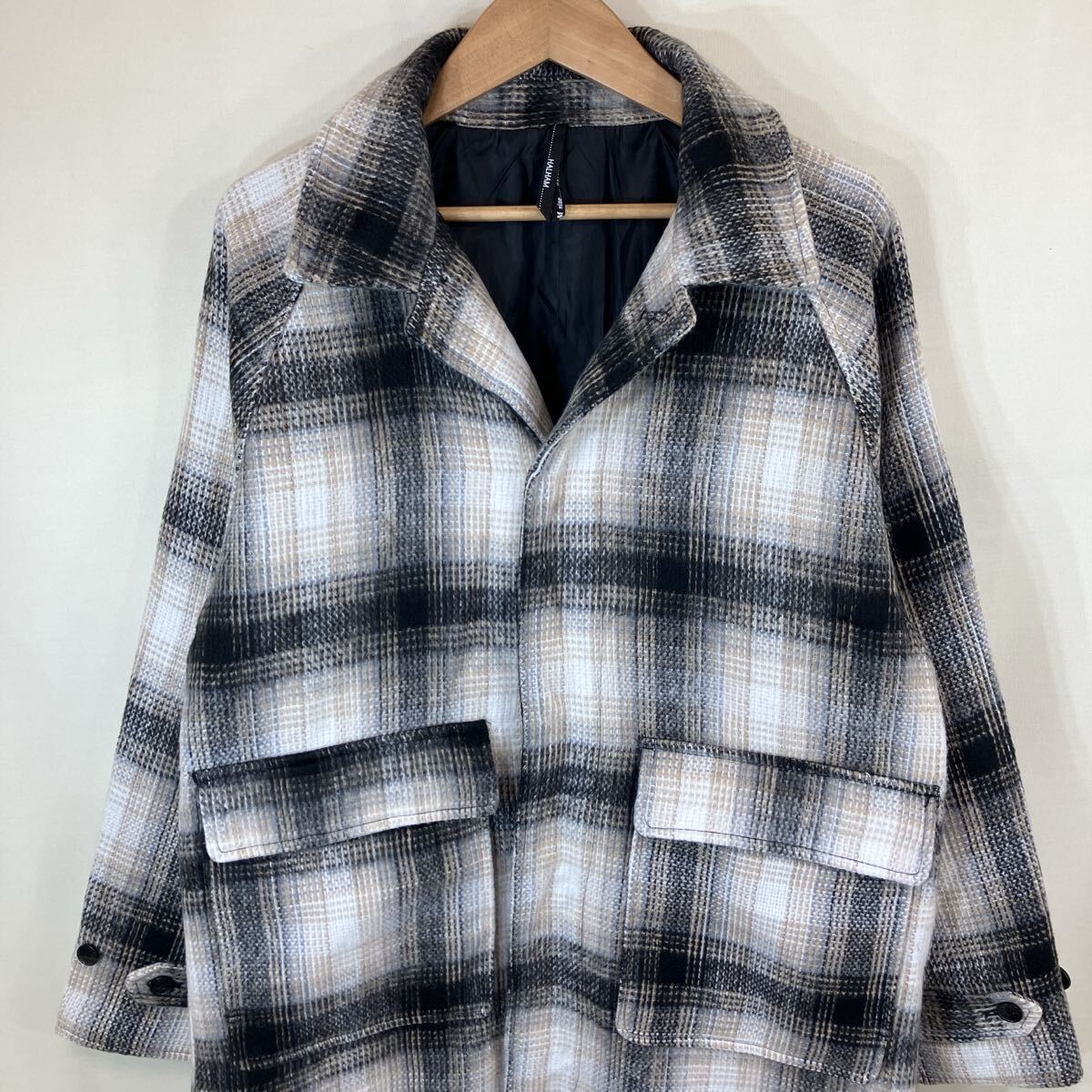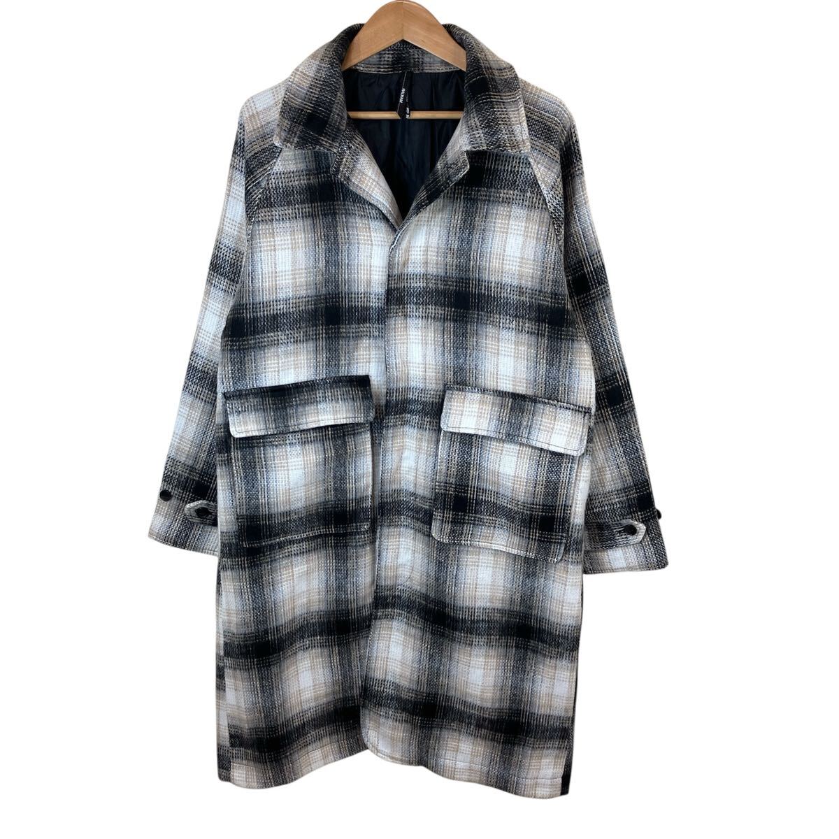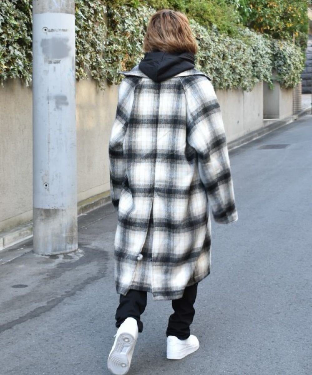 HALHAM(ハルハム)ステンカラーコート コート シャギーフェイクウールロングコート チェック men's ladies メンズ レディース ユニセックス