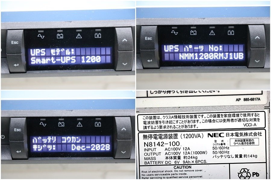 ◆バッテリー有効期限:2028年12月◆ NEC(APC) 無停電電源装置 Smart-UPS NMM1200RMJ1UB 1200VA LCD 100V / 60494Y